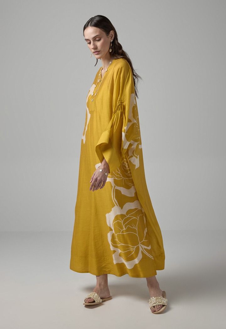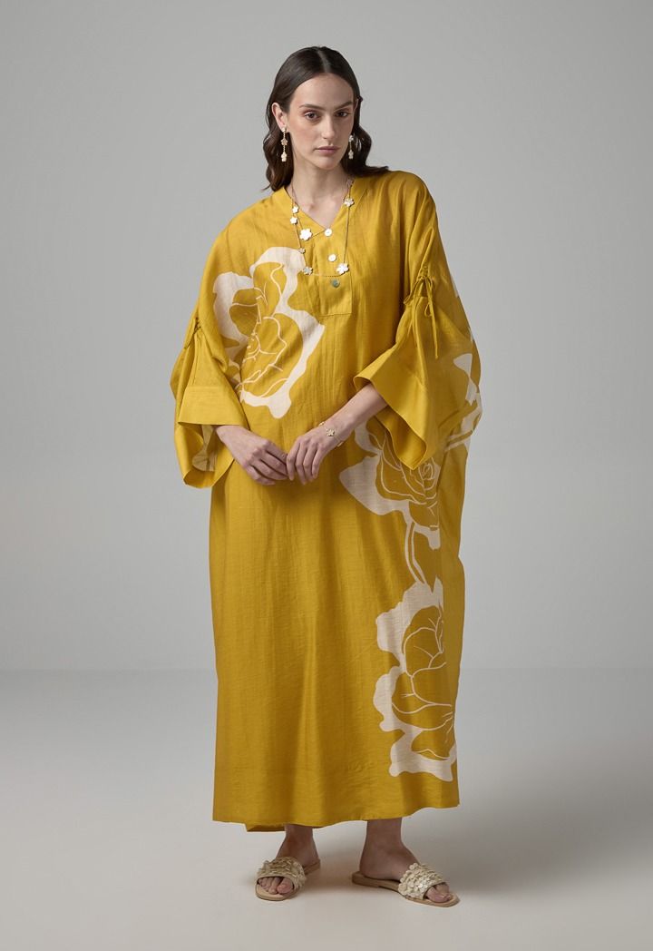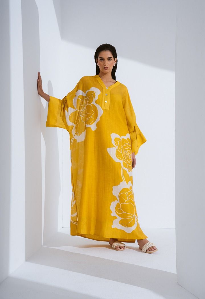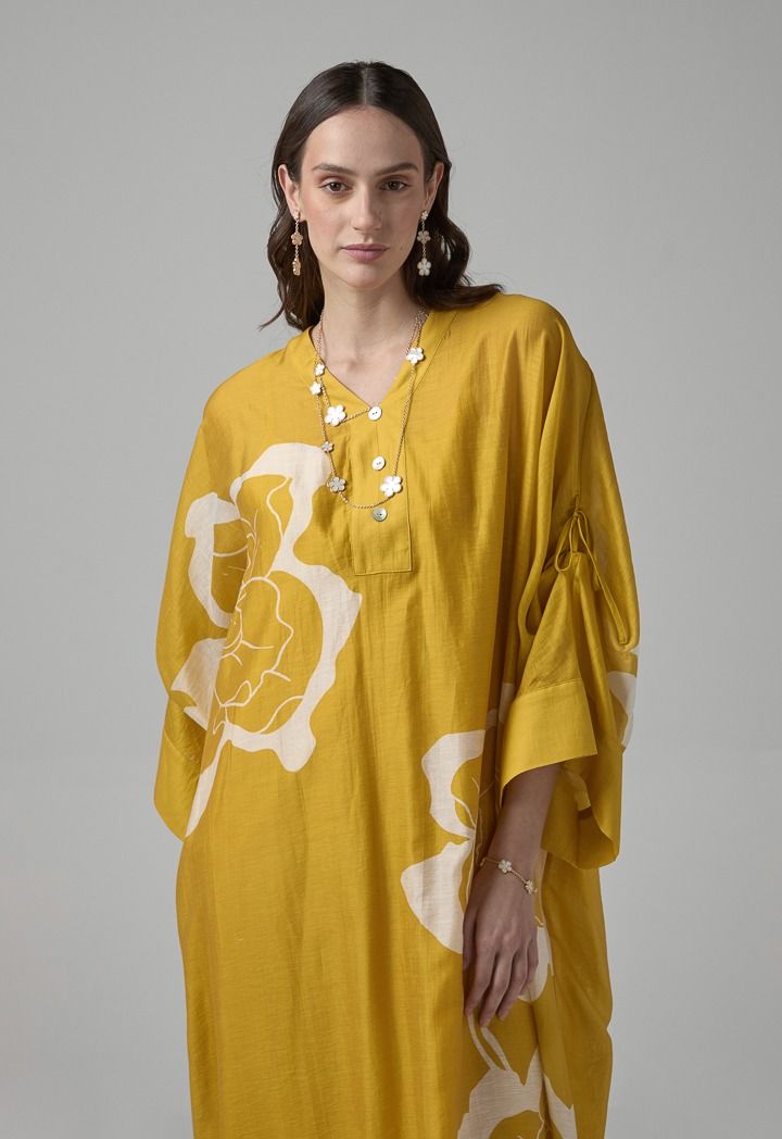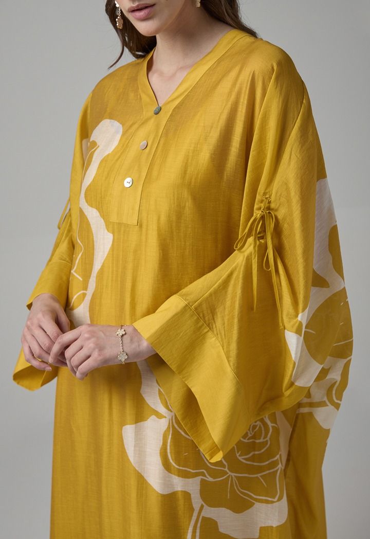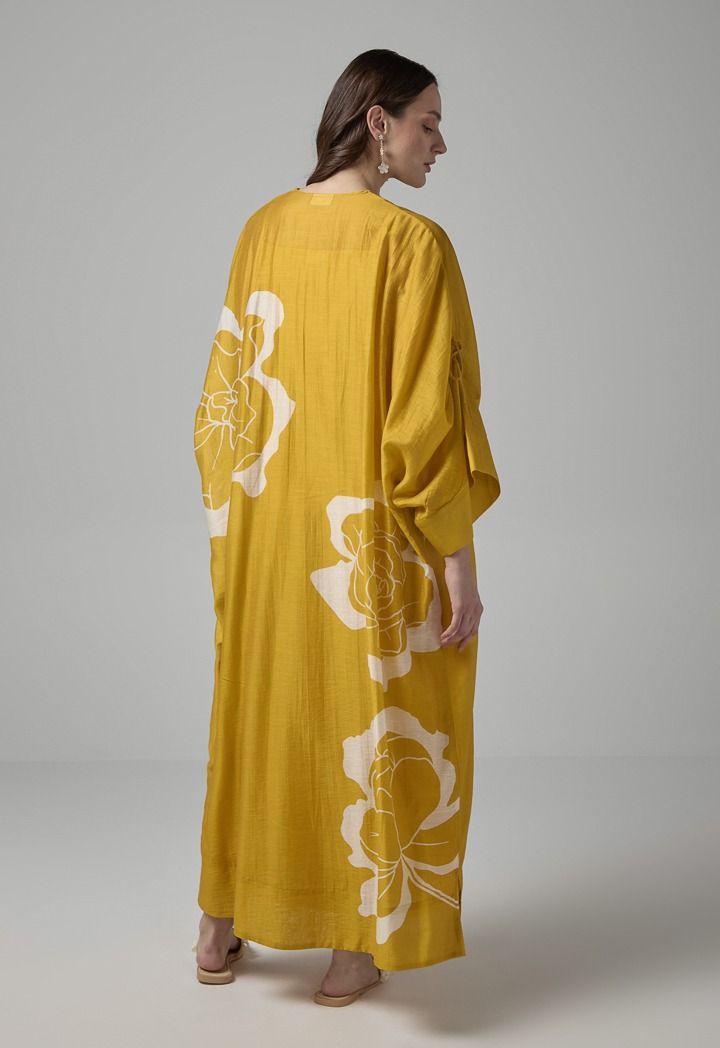 Design: Floral Printed, Oversize, Inner Sleeveless Dress, Buttons Details, Slit At Hem