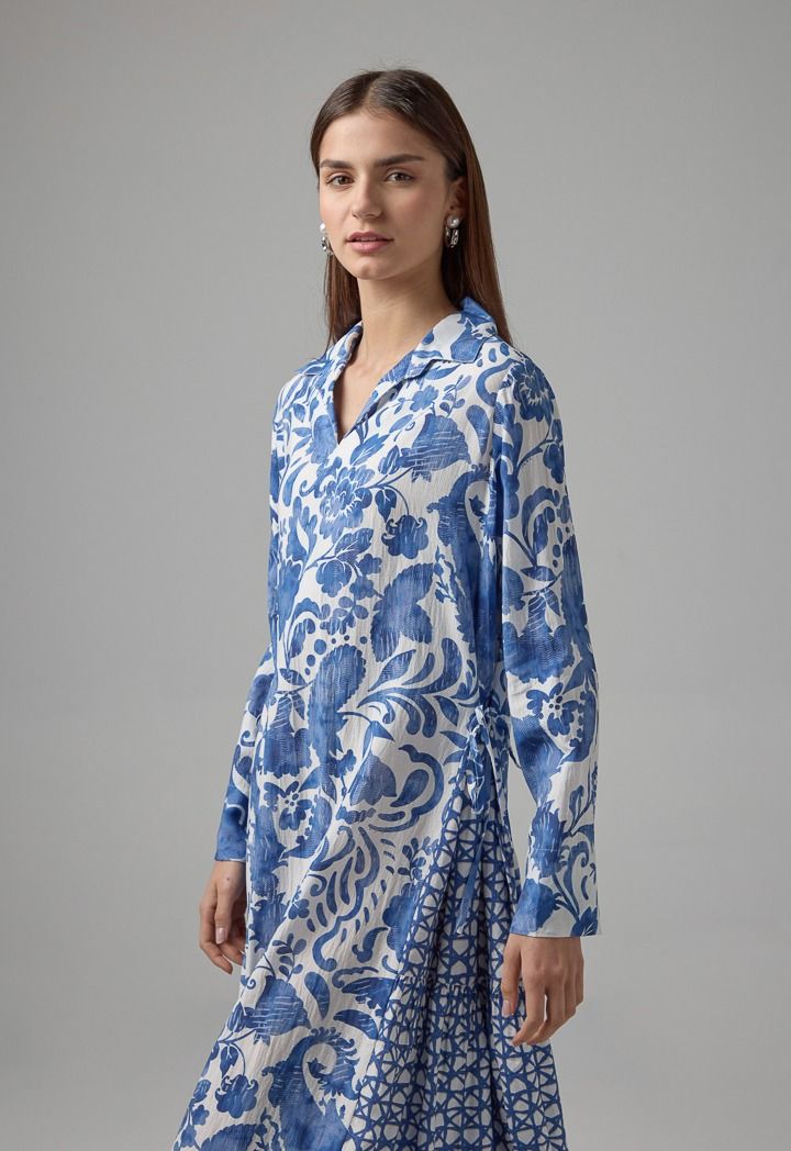 Design: Floral Printed, Oversize, Logo Details, Self Tie at the side
