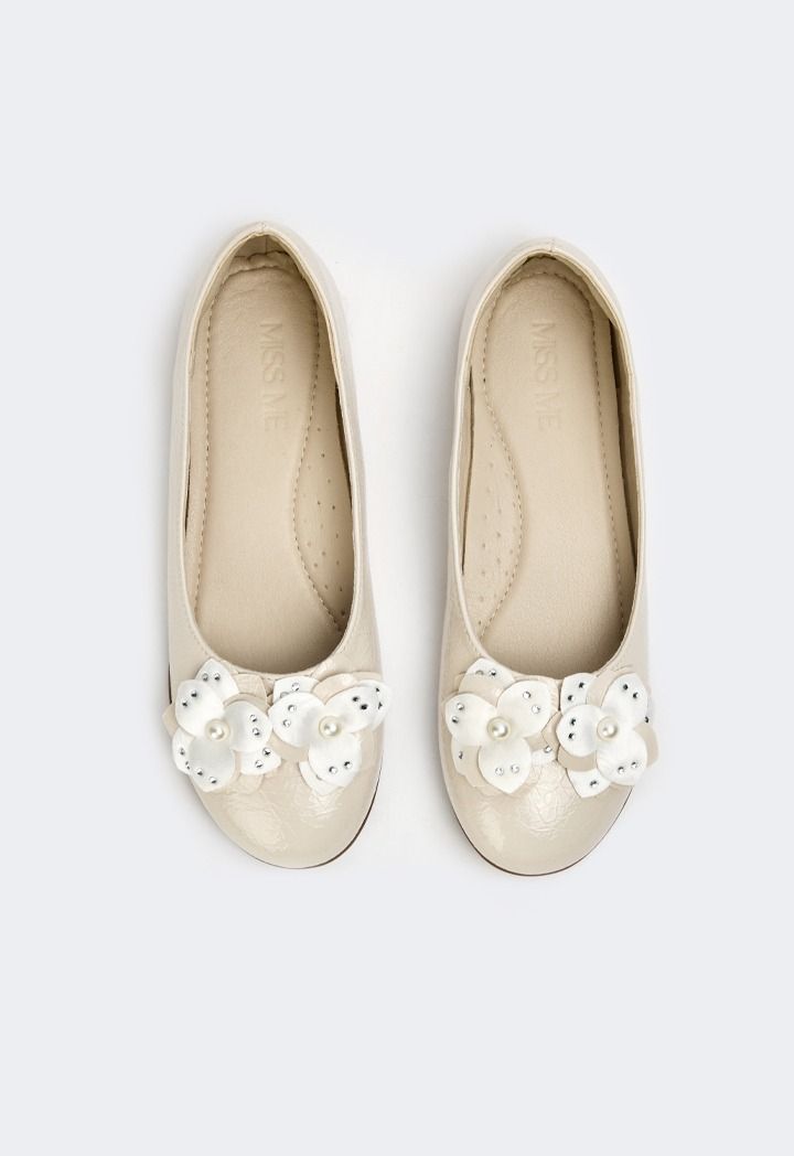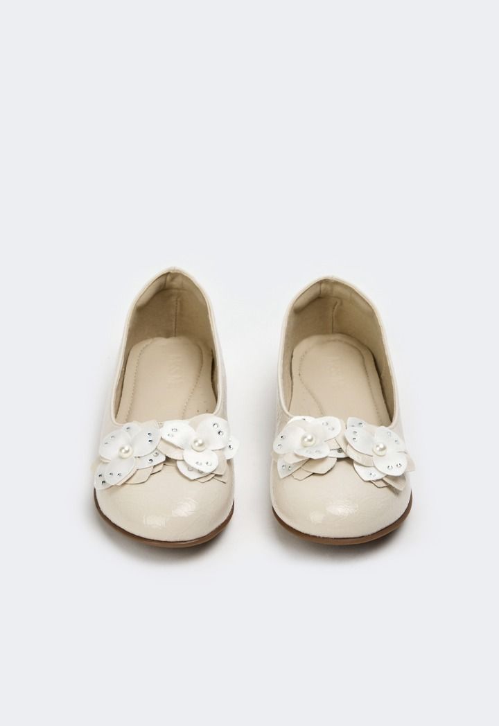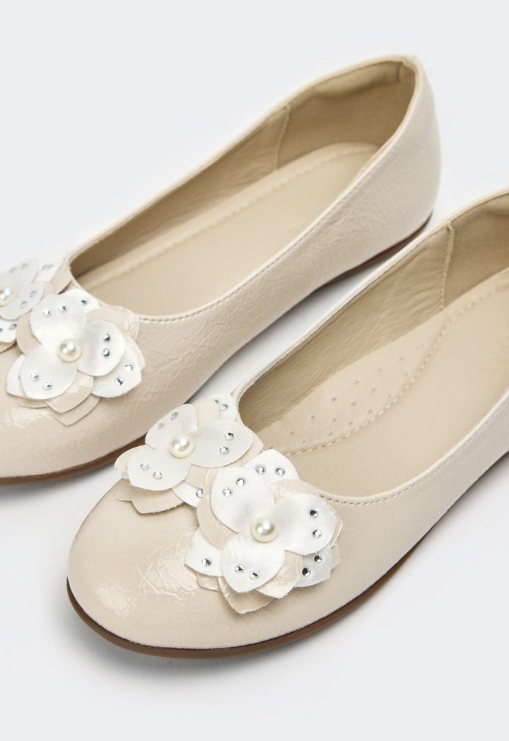 Amplify your daughters collection of shoes with this PU Leather floral flat ballerinas.