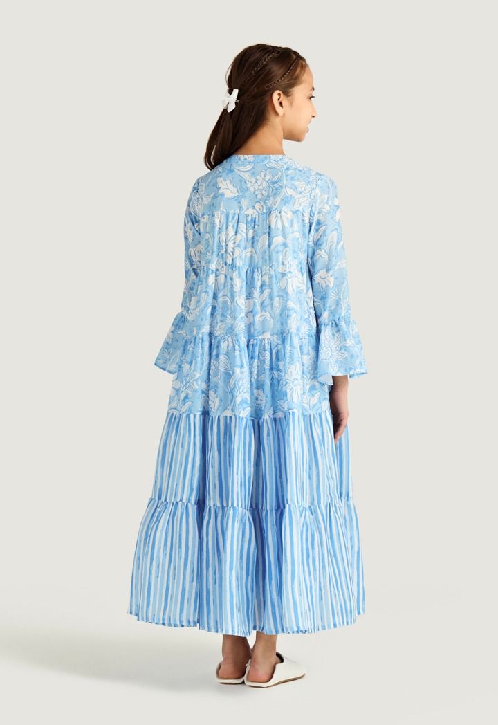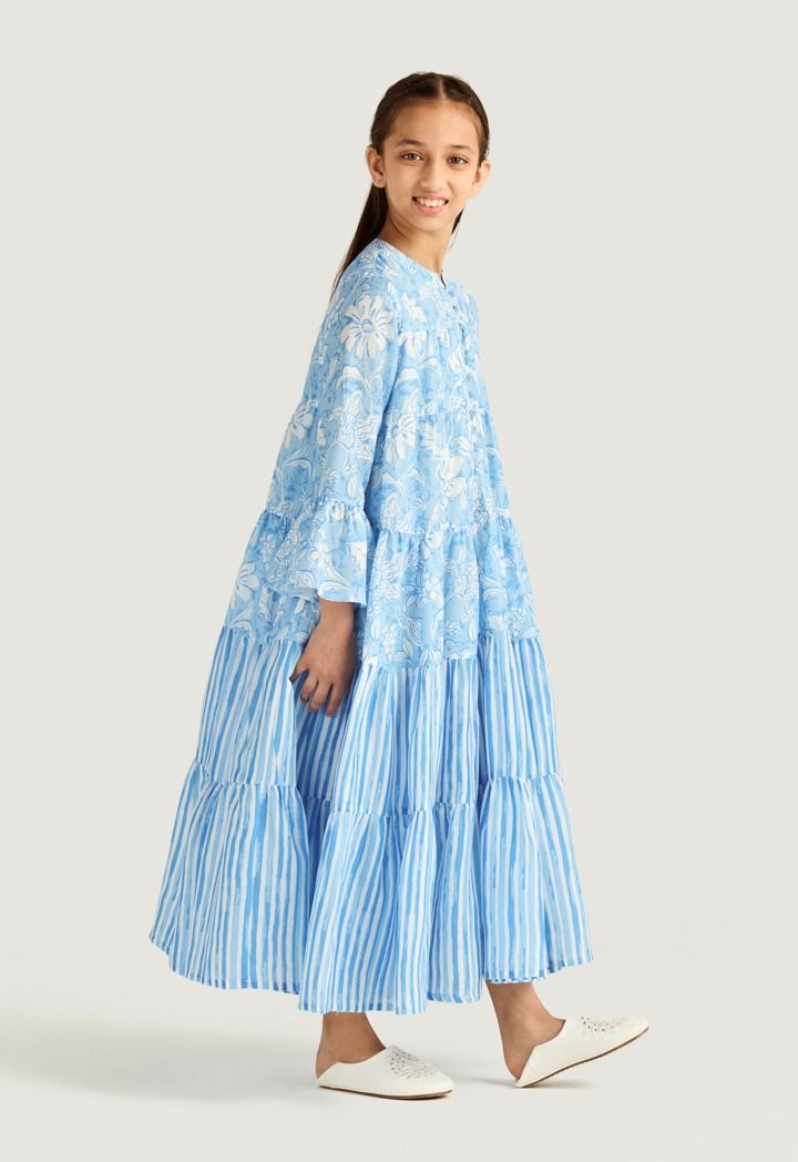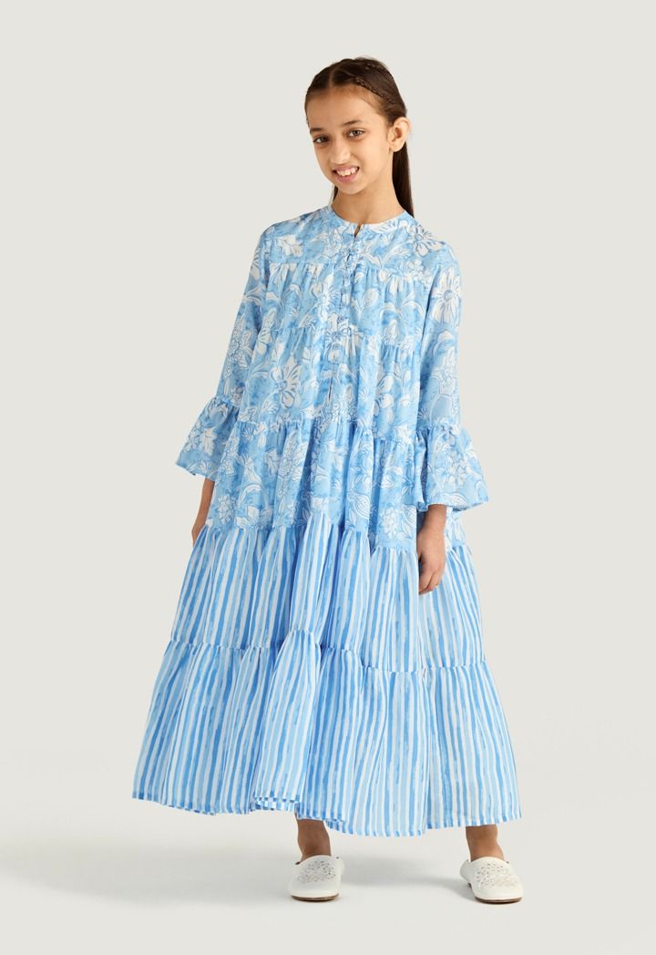 A loose dress with floral and stripe prints that moves beautifully, making it your go to choice for a comfy yet eye catching look in Ramadan and beyond.