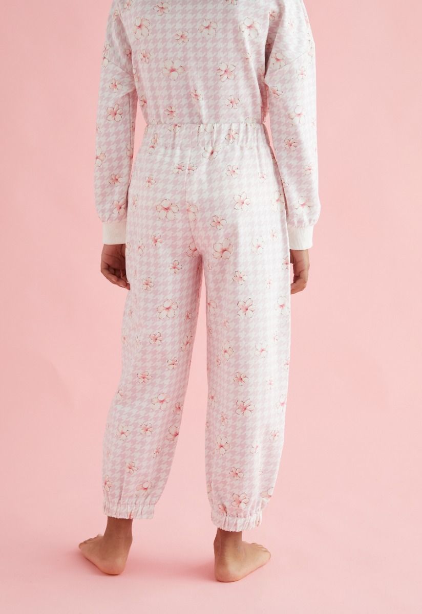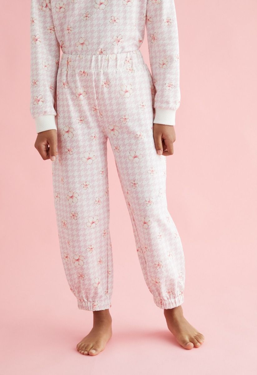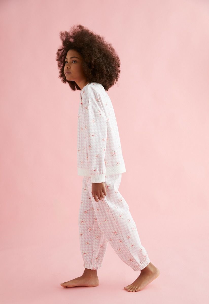 Present to your daughter comfort in style, with this floral pajama set of a long sleeves top and an elastic waist pants.