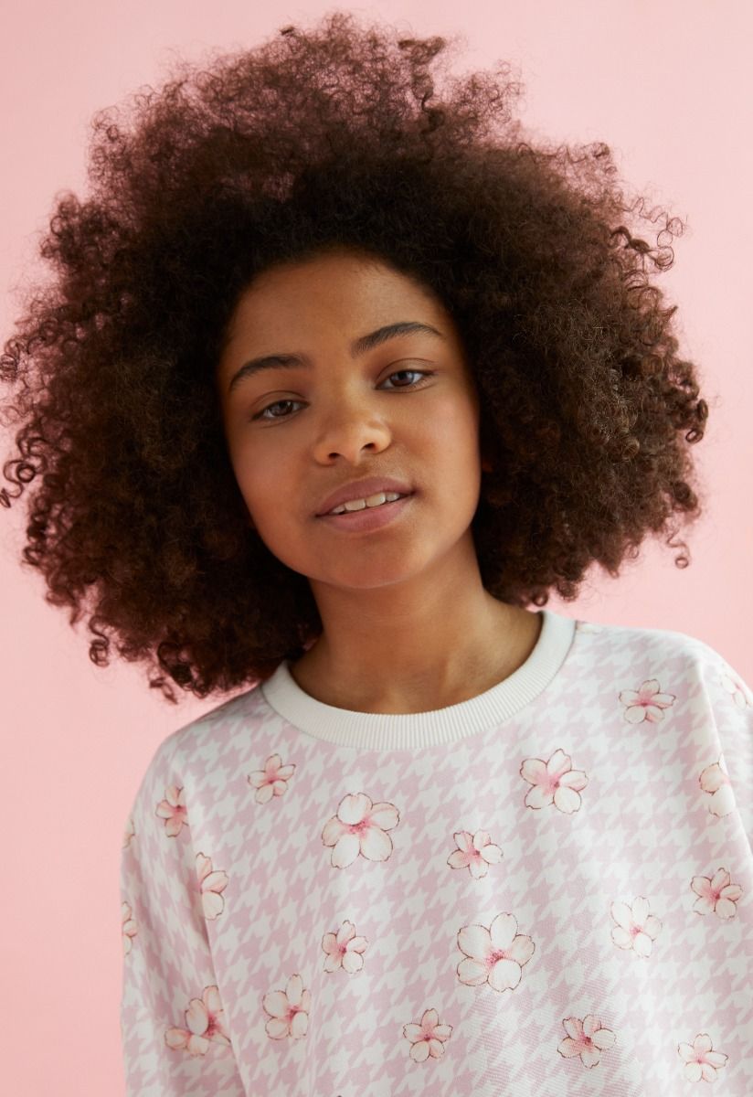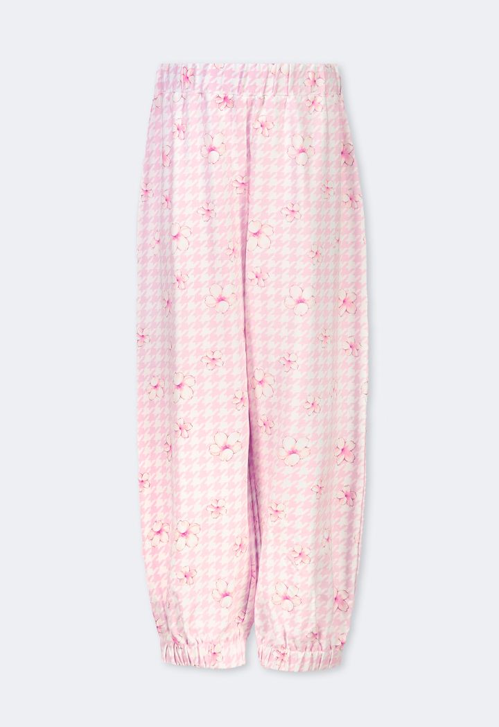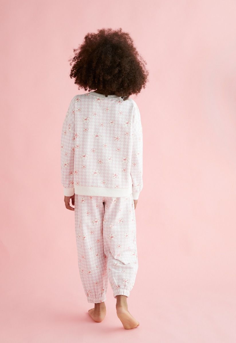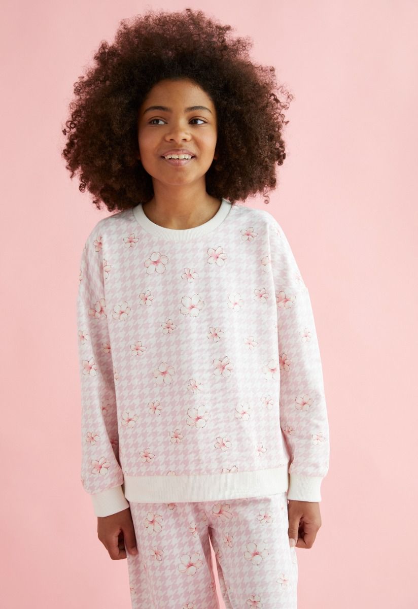 Present to your daughter comfort in style, with this floral pajama set of a long sleeves top and an elastic waist pants.