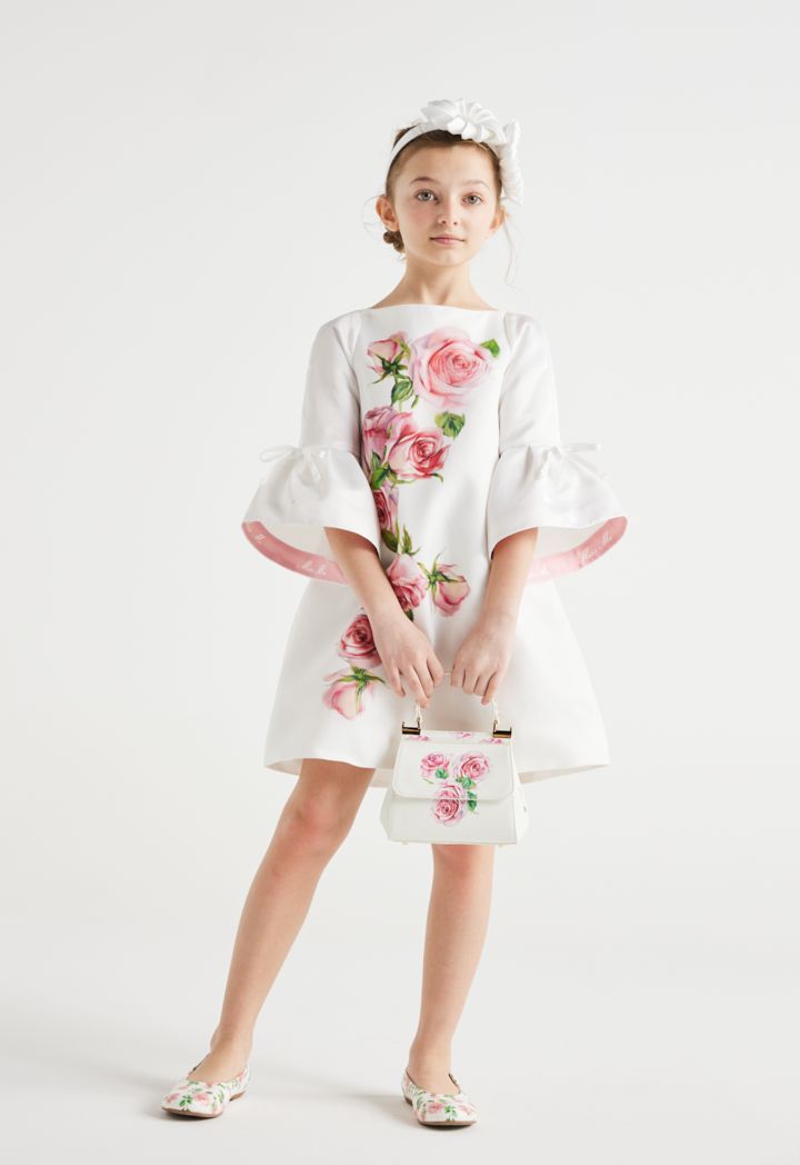 Step up your daughters dress up game with this uniquely designed flower print dress with its extraordinary cap sleeves.
