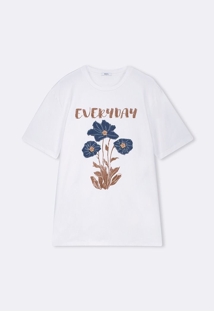 Step into the season with this flower print T-shirt , a fresh, vibrant piece that brings a touch of nature and effortless charm to your everyday look.
