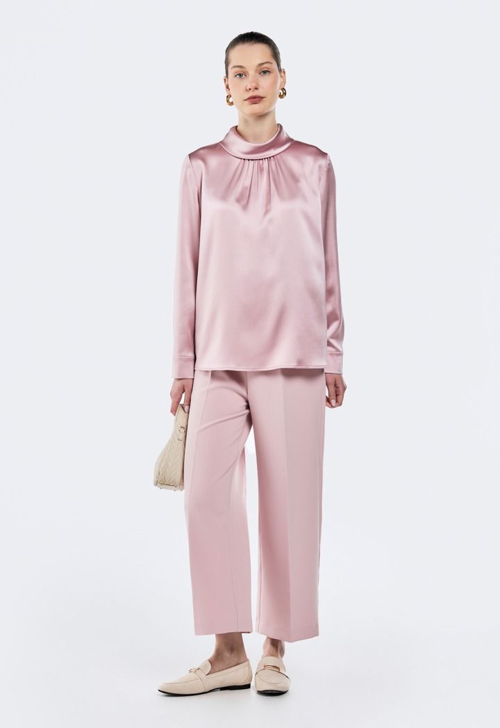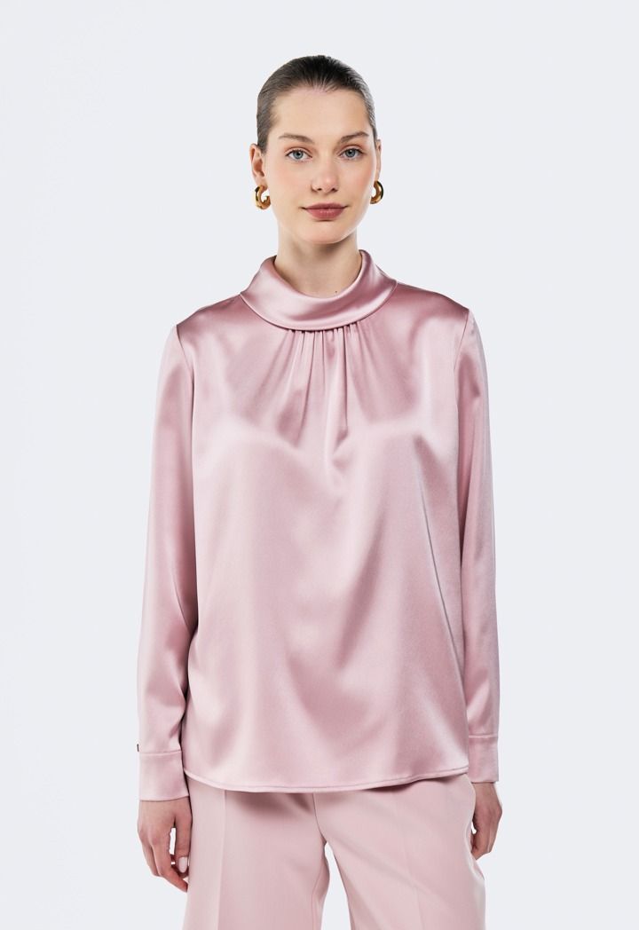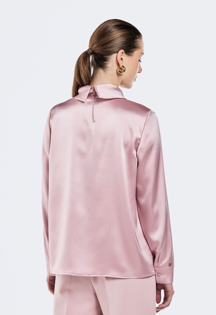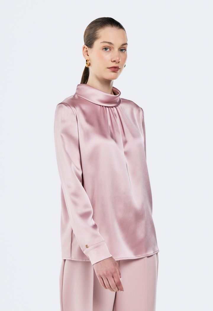 A modern classic, this satin blouse with a folded neckline is your go-to piece for sophisticated style, designed to flatter and flow with ease.