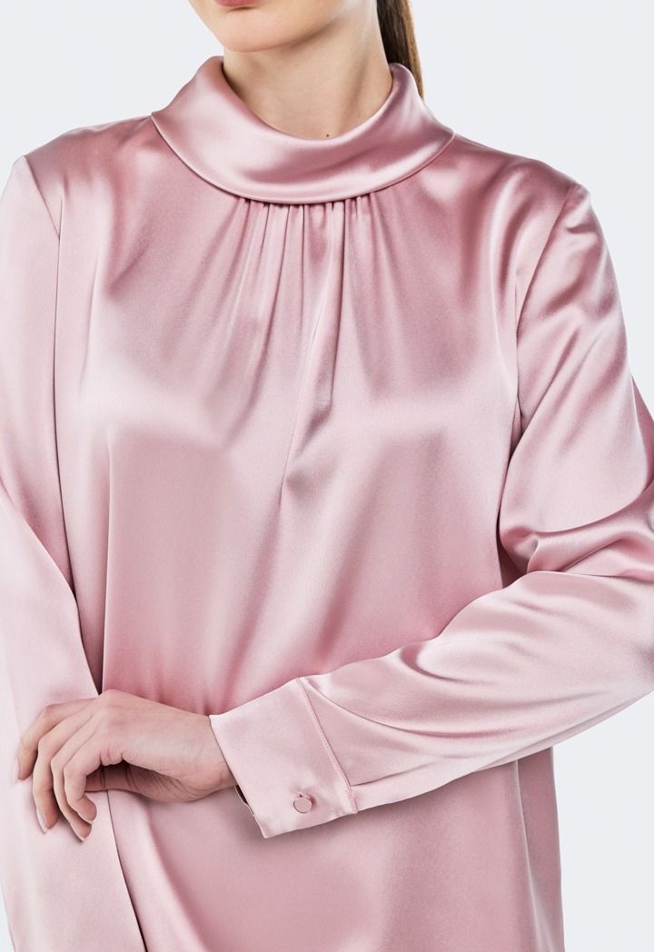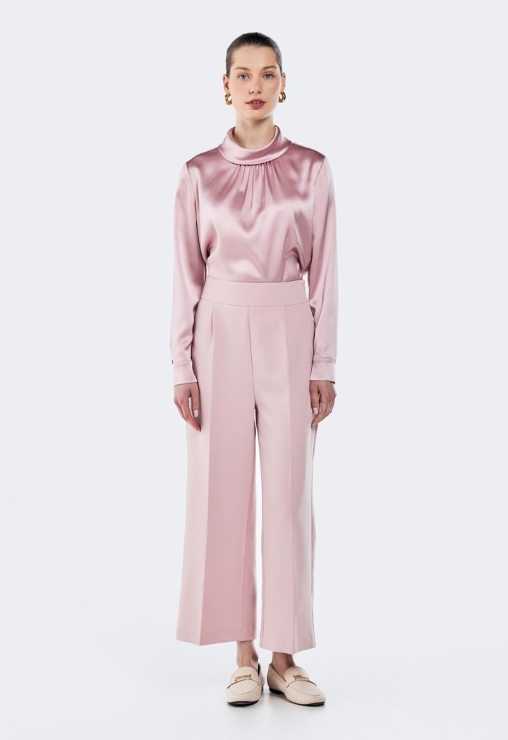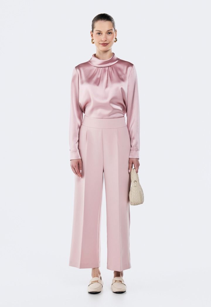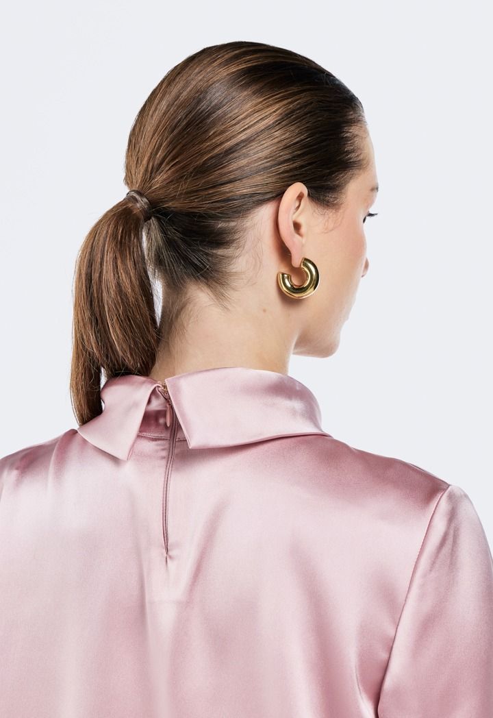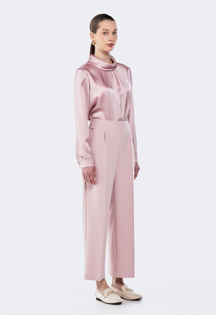 A modern classic, this satin blouse with a folded neckline is your go-to piece for sophisticated style, designed to flatter and flow with ease.