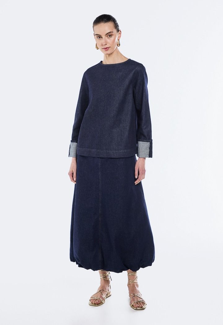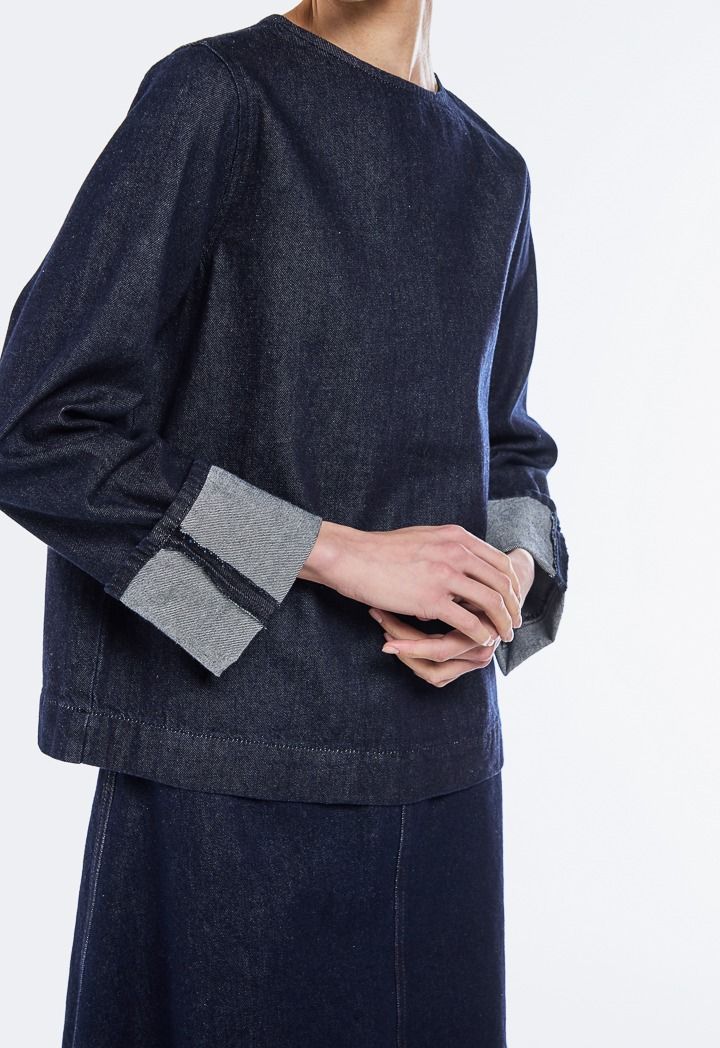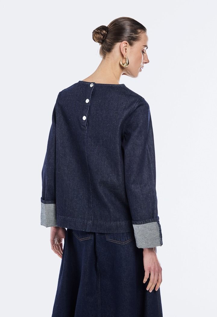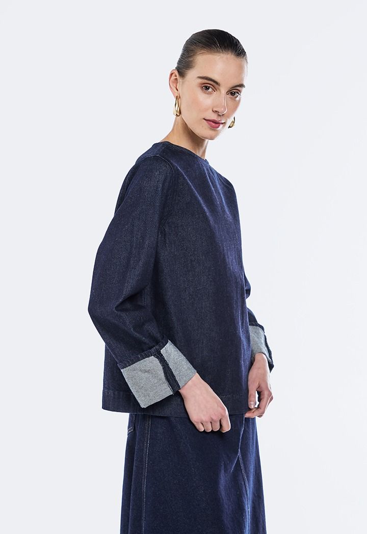 Effortlessly polished, this Blouse takes the guesswork out of styling. Crafted from denim. Its design eliminates the need for extra accessories, making it perfect for busy mornings.