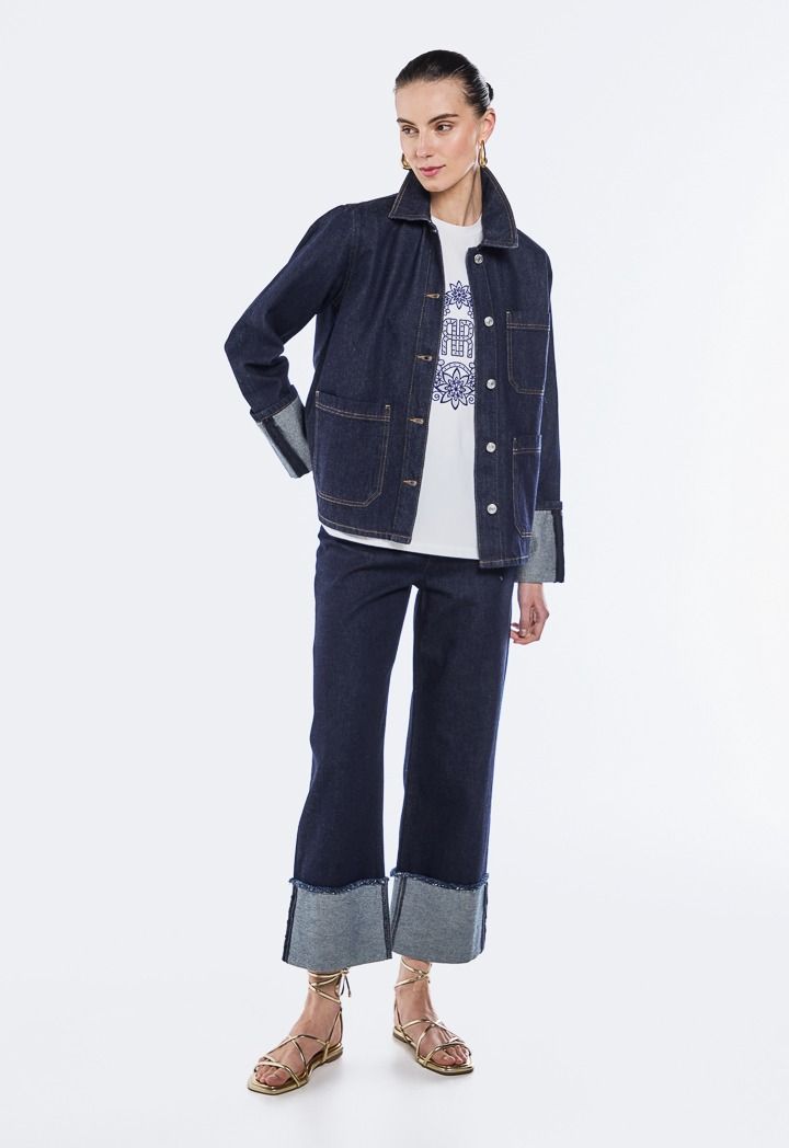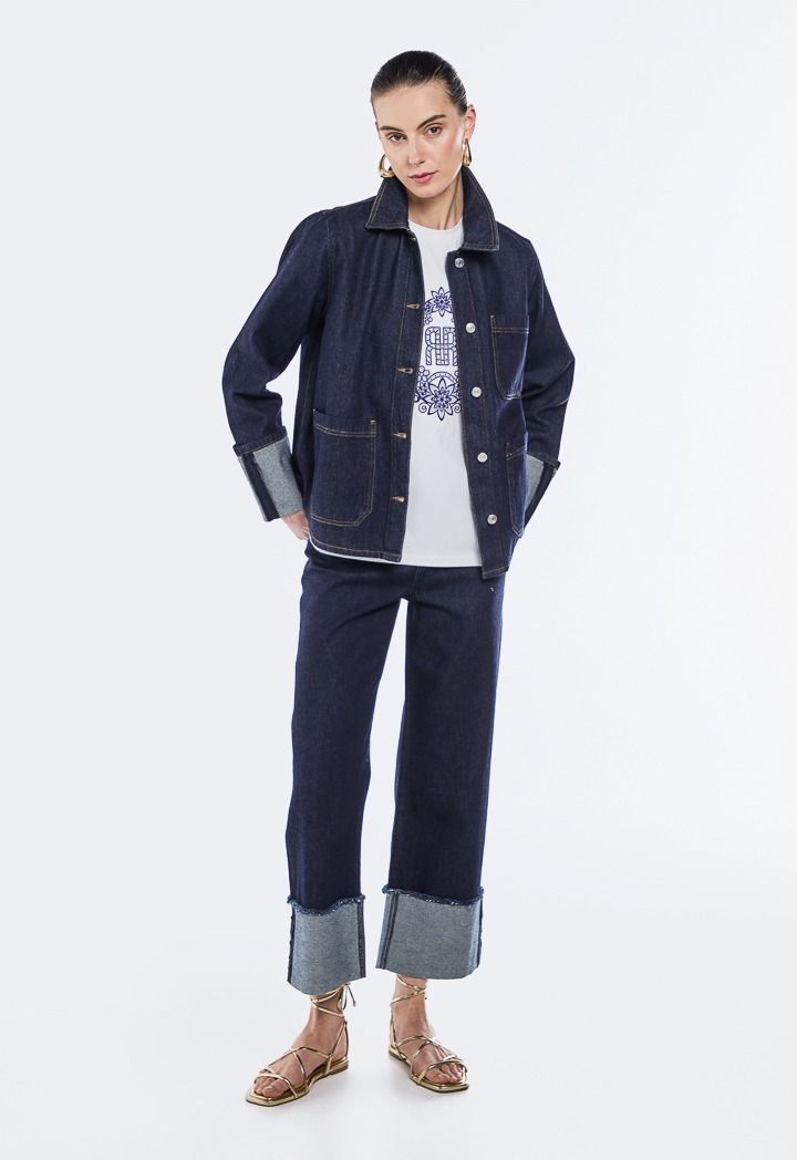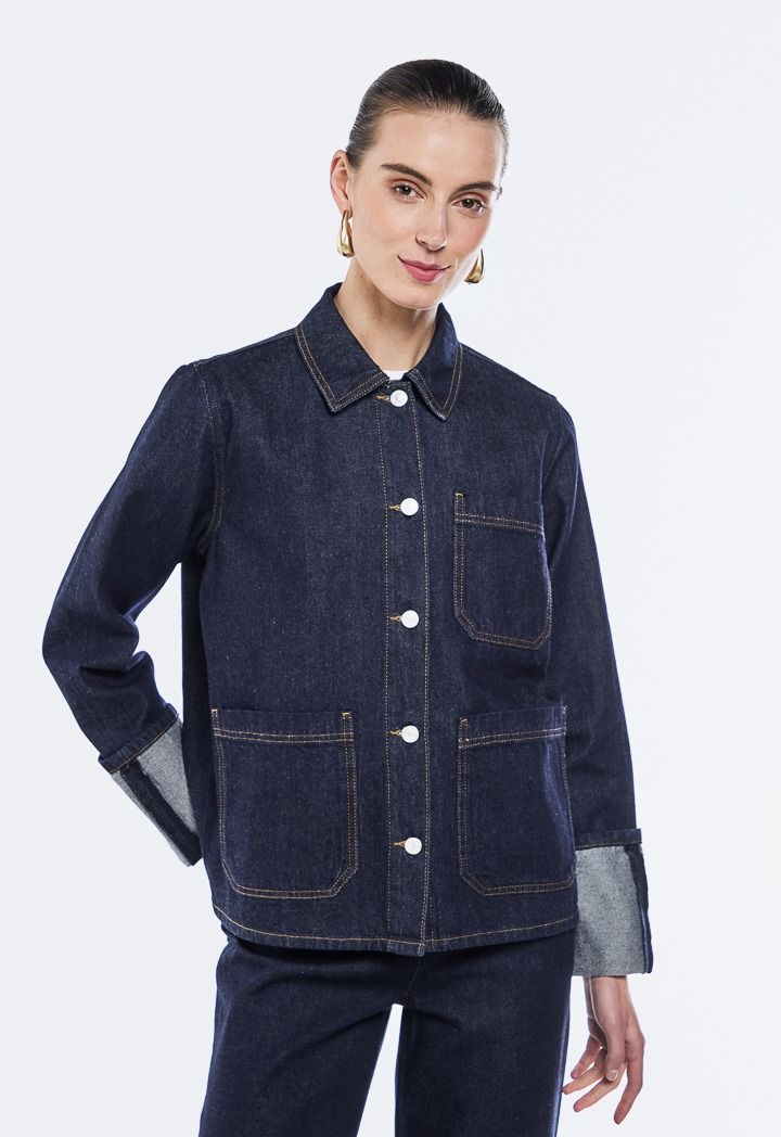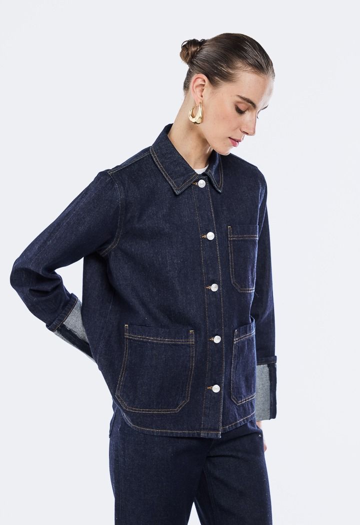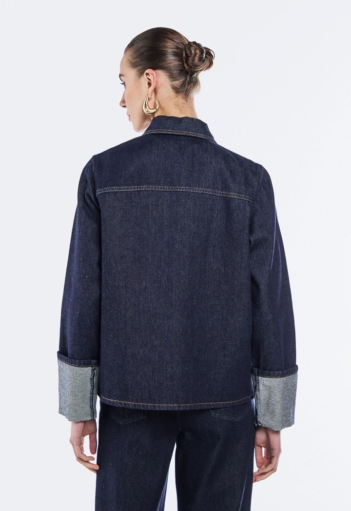 Effortlessly polished, this Jacket takes the guesswork out of styling. Crafted from denim. Its design eliminates the need for extra accessories, making it perfect for busy mornings.