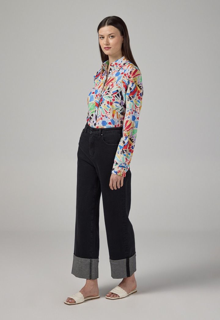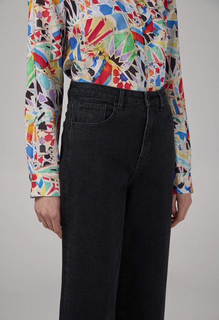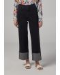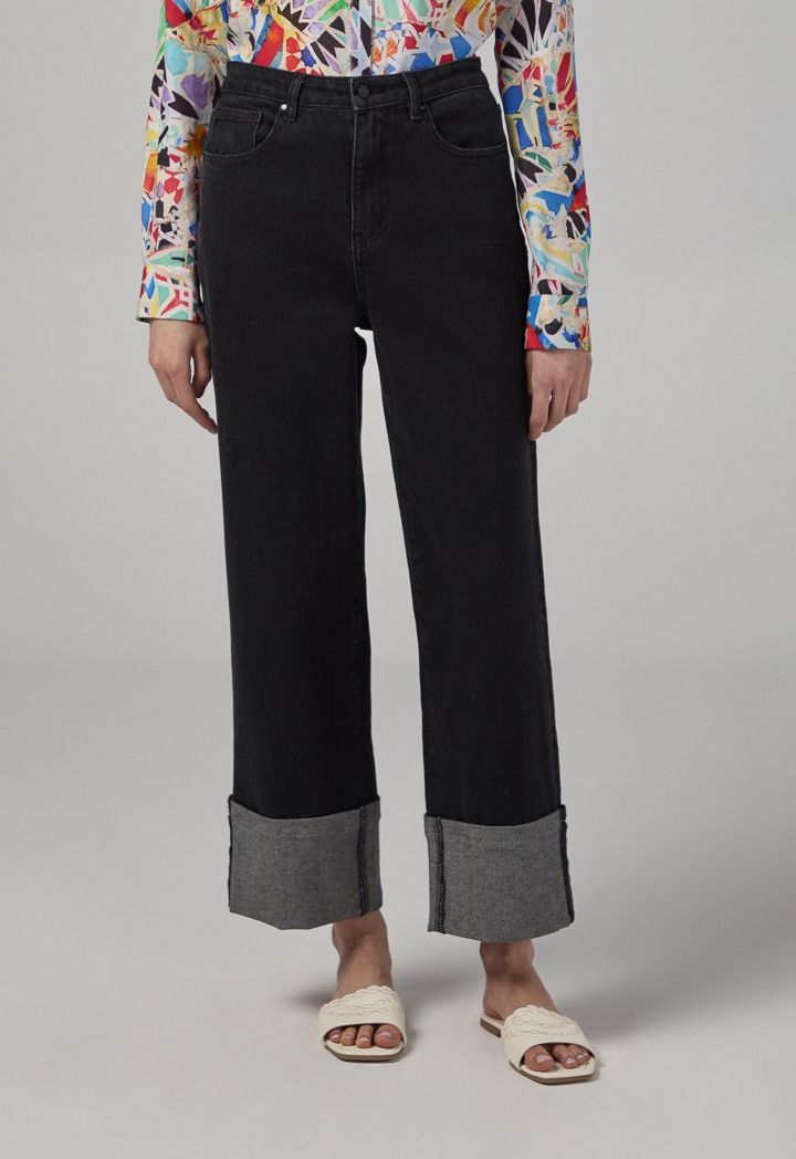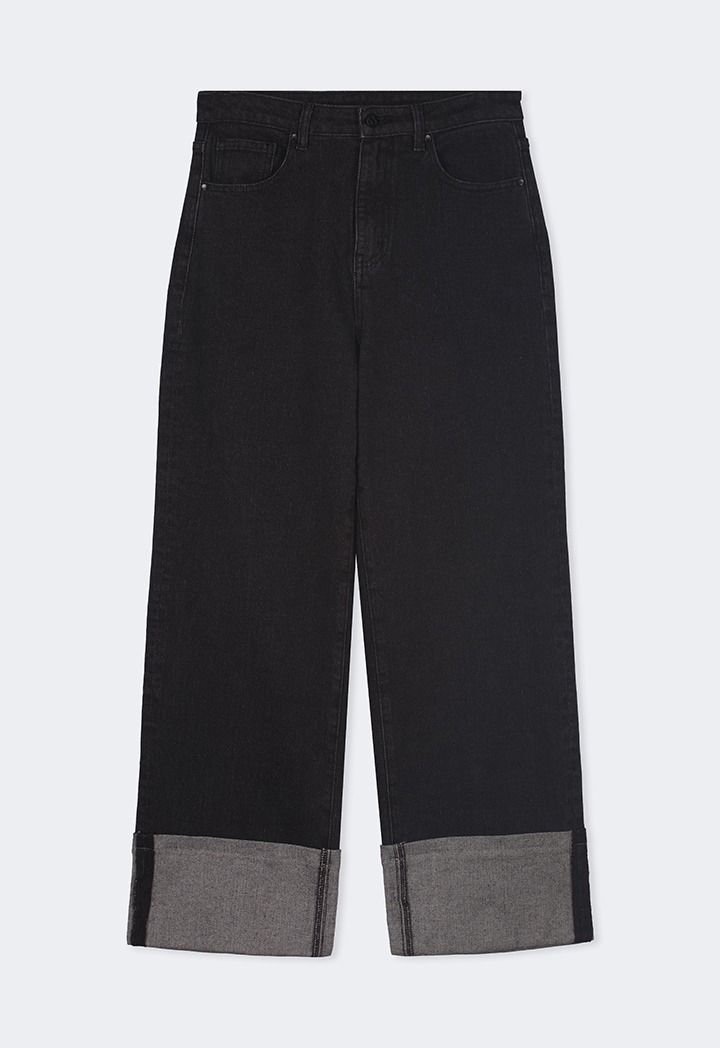 Design: Single Tone, Straight Wide Legs, Folded Hem, Pockets, Denim