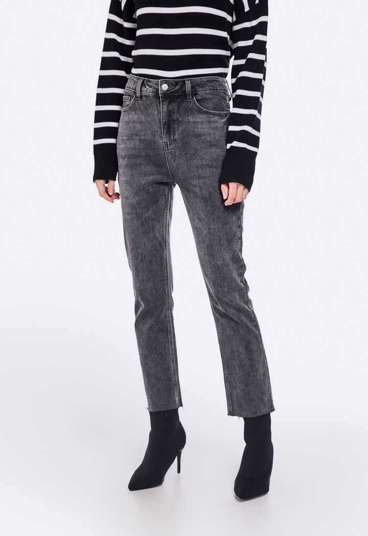 Design: Mid-Rise, Solid, Frayed Hem, Straight Cut, Side and Back Pockets