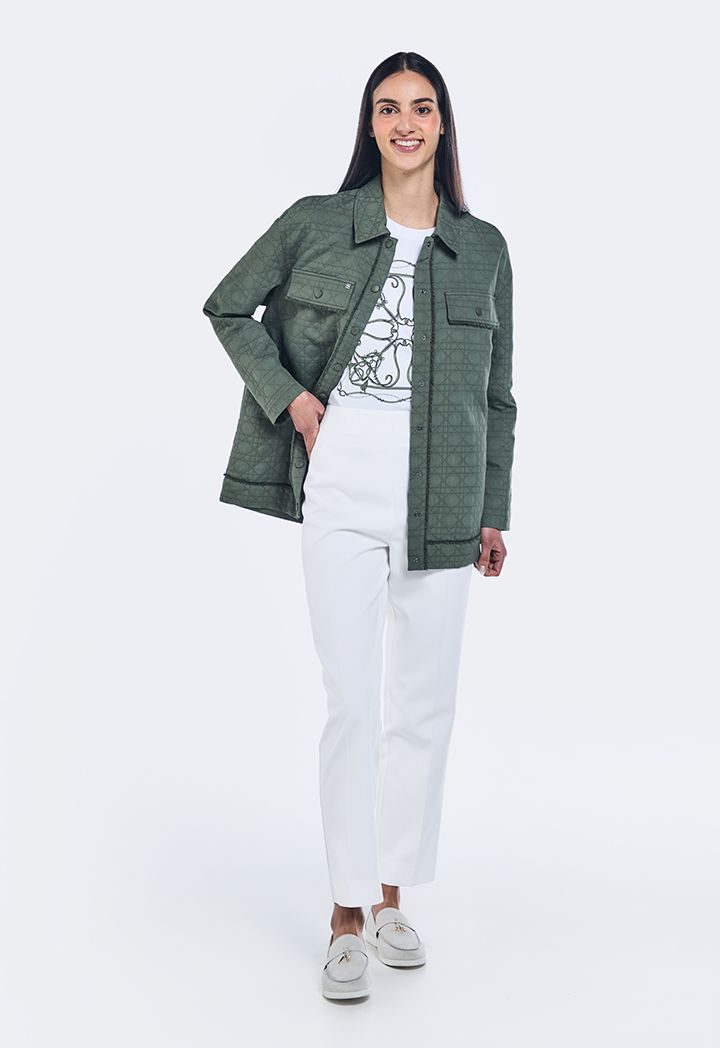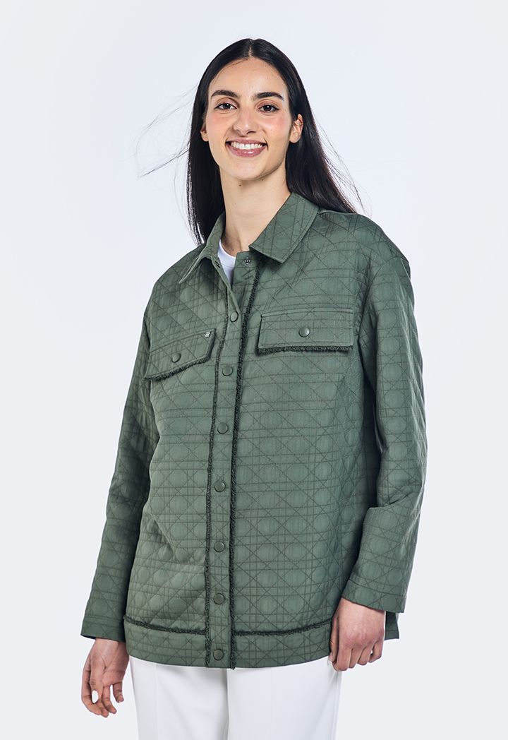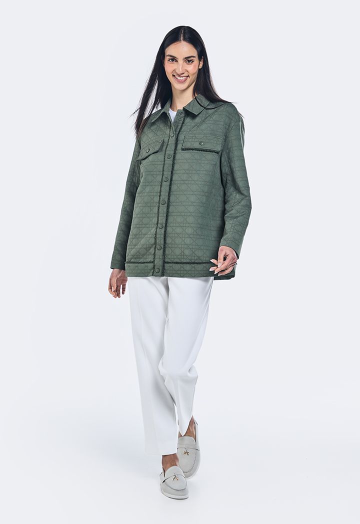 Add more Modern pieces to your collection by pairing this Jacket. It is designed with a Faux Pockets that add to its appeal.