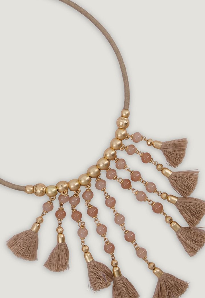 Beaded necklace with golden accents and fringed drops-sweet girgian jingle fun for little girls happy movements and celebrations.