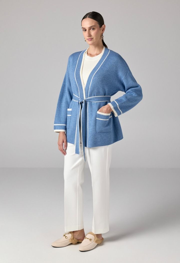 Design: Contrast, Knitted, Self-Fabric Belt, Front Pockets