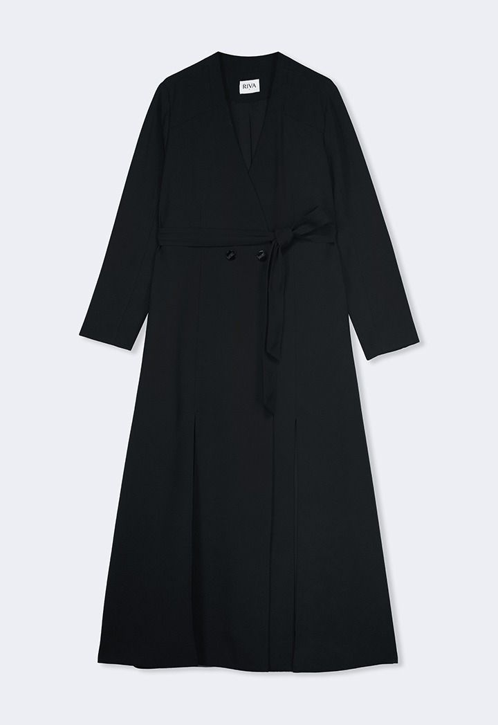 Design: Solid, Double Breasted, Front Slits, Belted, Side Pockets, Attached Lining