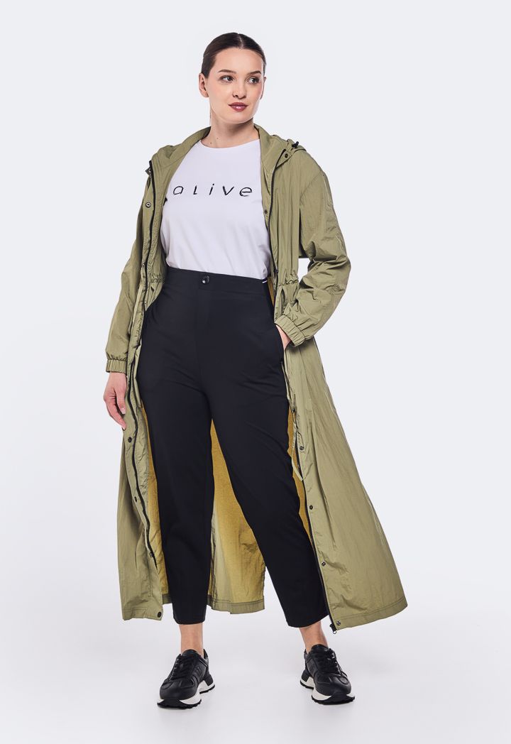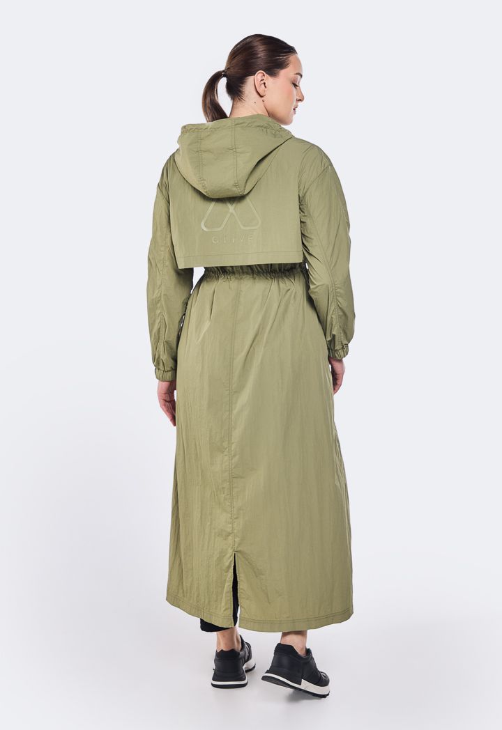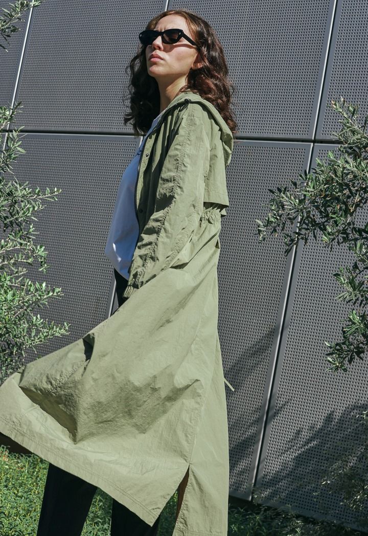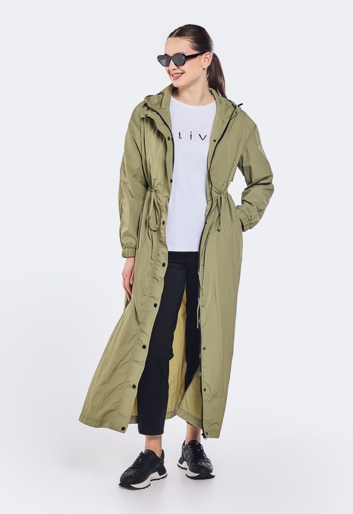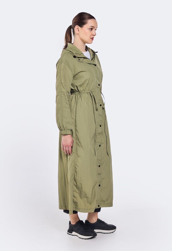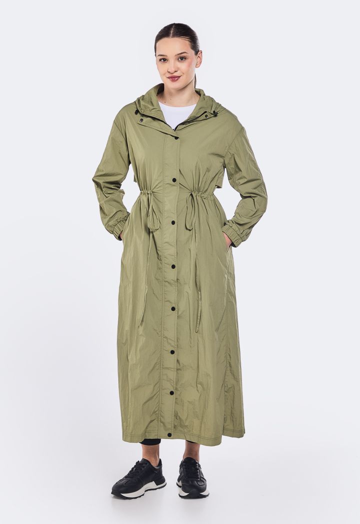Look stylish as you go With this lightweight trench coat. The drawstring Waist details of this coat add exciting details.