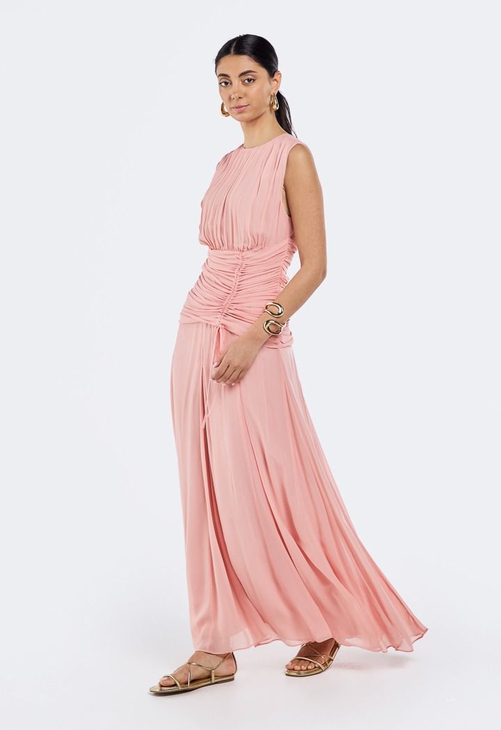 This dress features a chic gathered Waist, adding a touch of artisanal charm. Pair it with minimalist sandals and a woven clutch for a breezy, sophisticated look.