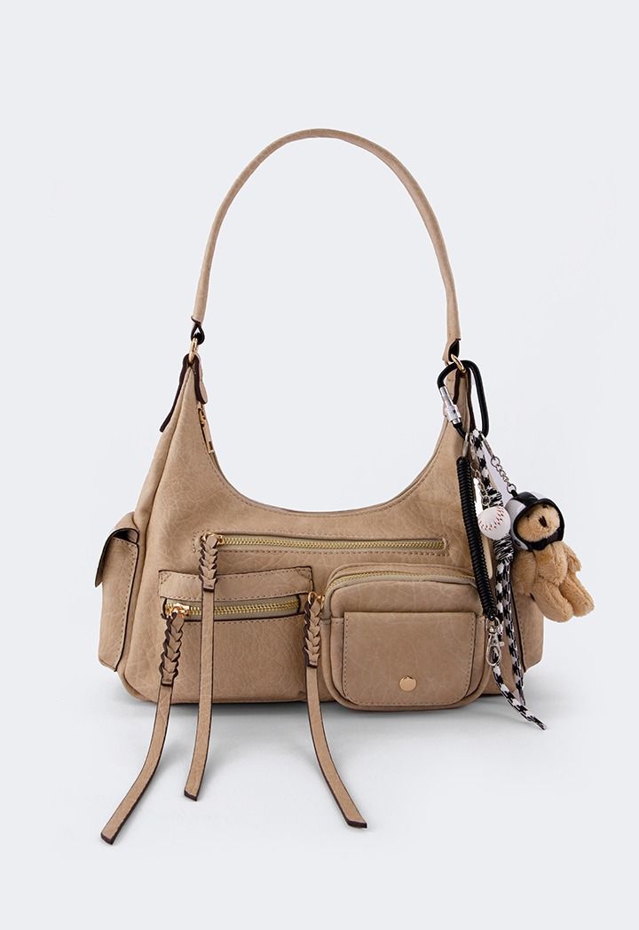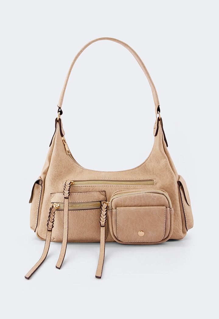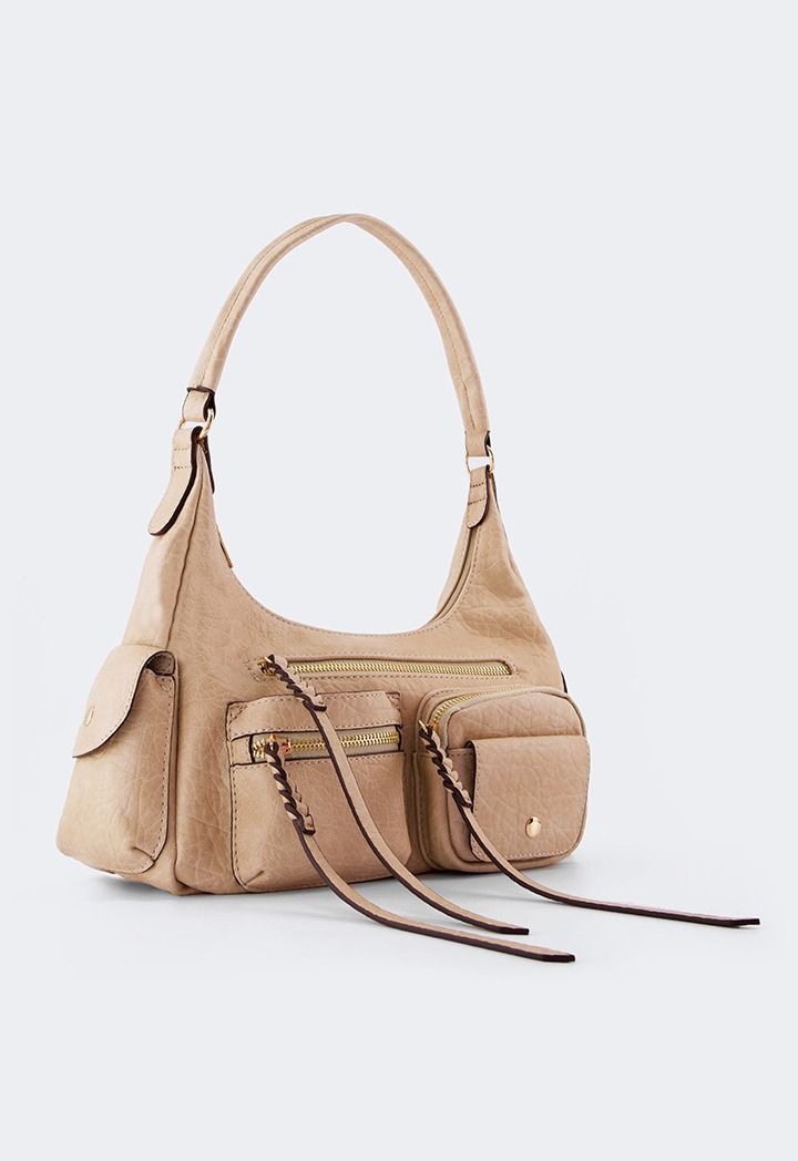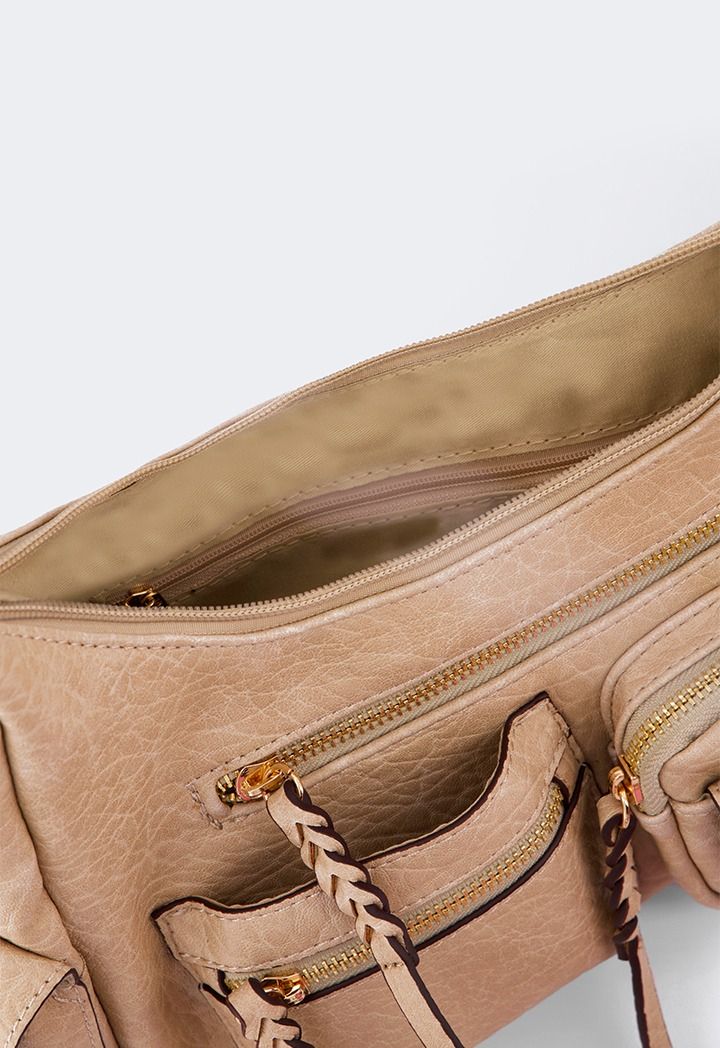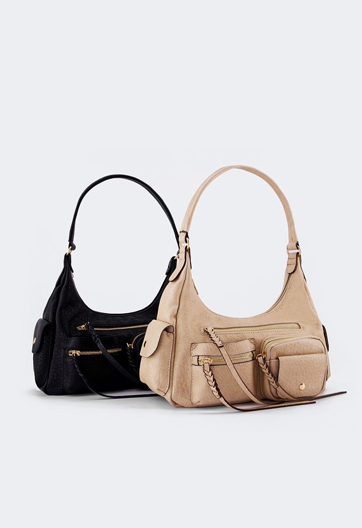 A shoulder bag that is made from durable PU Leather with a pockets design.