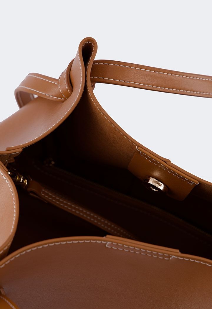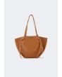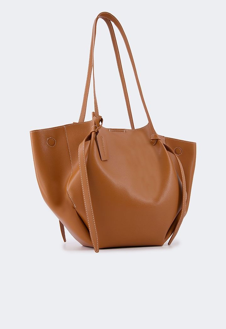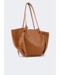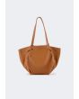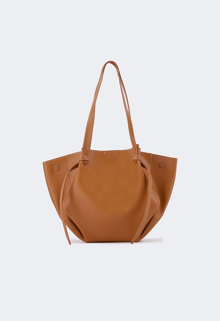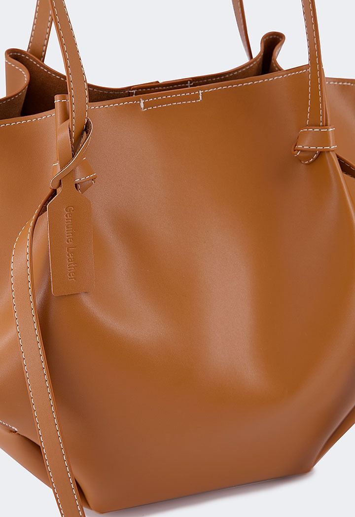 A genuine leather tote bag that is big enough to carry your basics, featuring shoulder straps.
