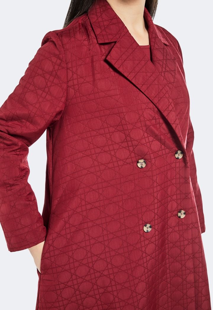 Design: Solid, Geometric Embroidered, Quilted, Side Pockets, Double Breasted