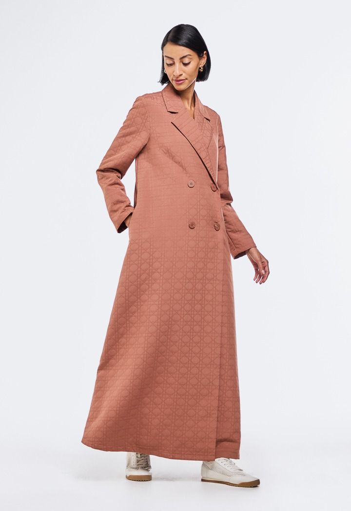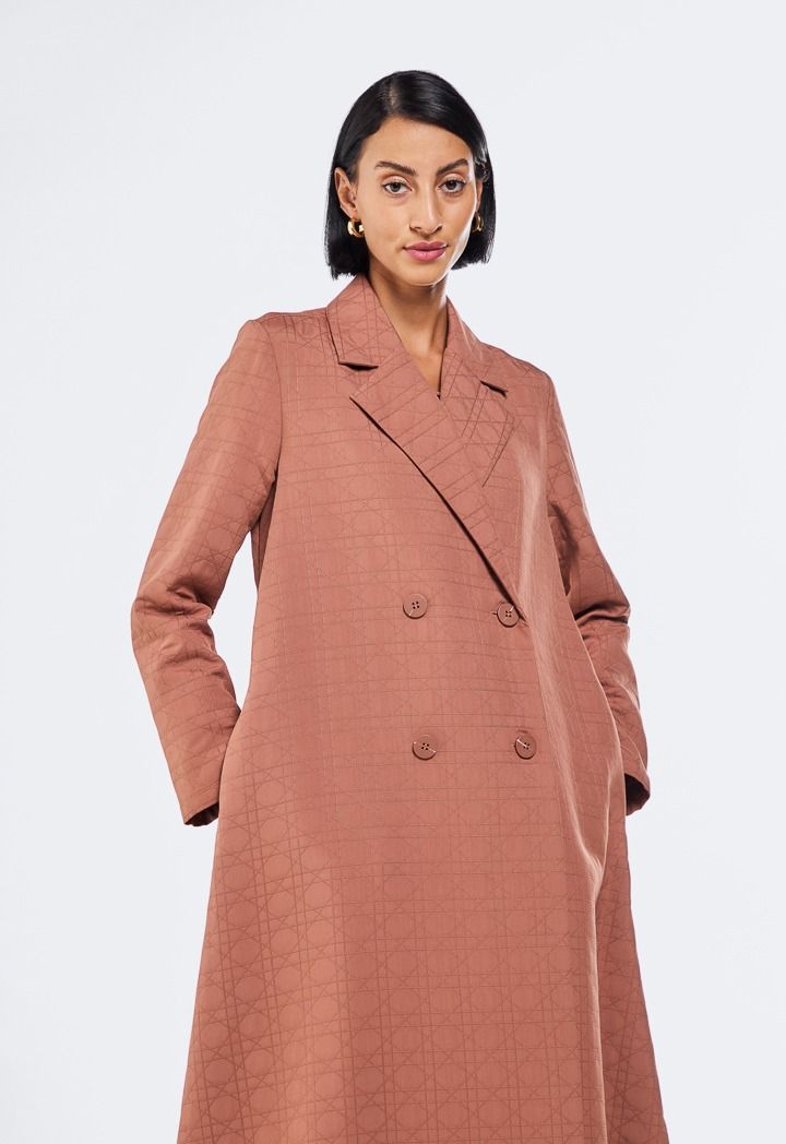 Design: Solid, Geometric Embroidered, Quilted, Side Pockets, Double Breasted