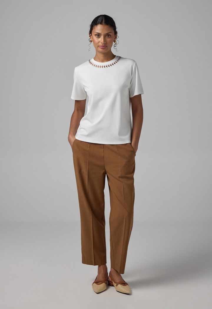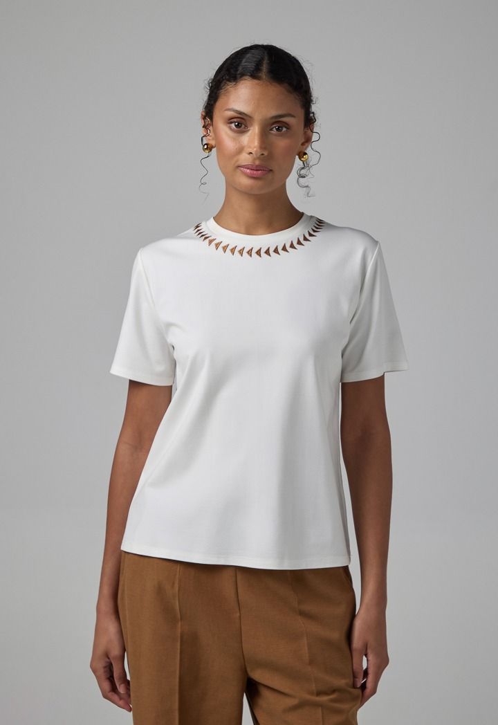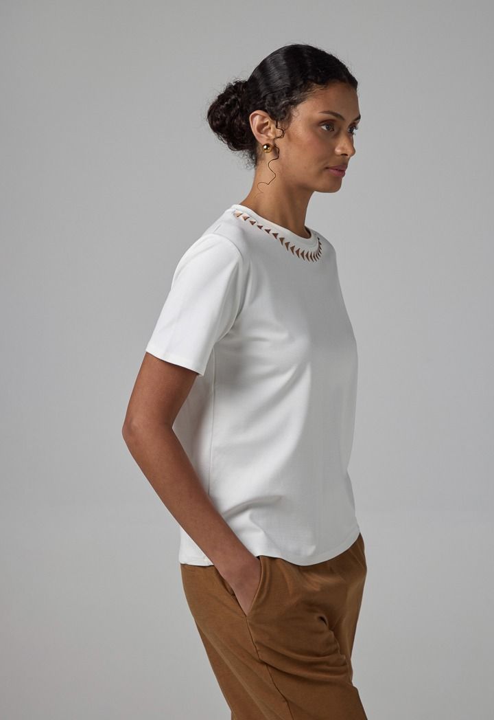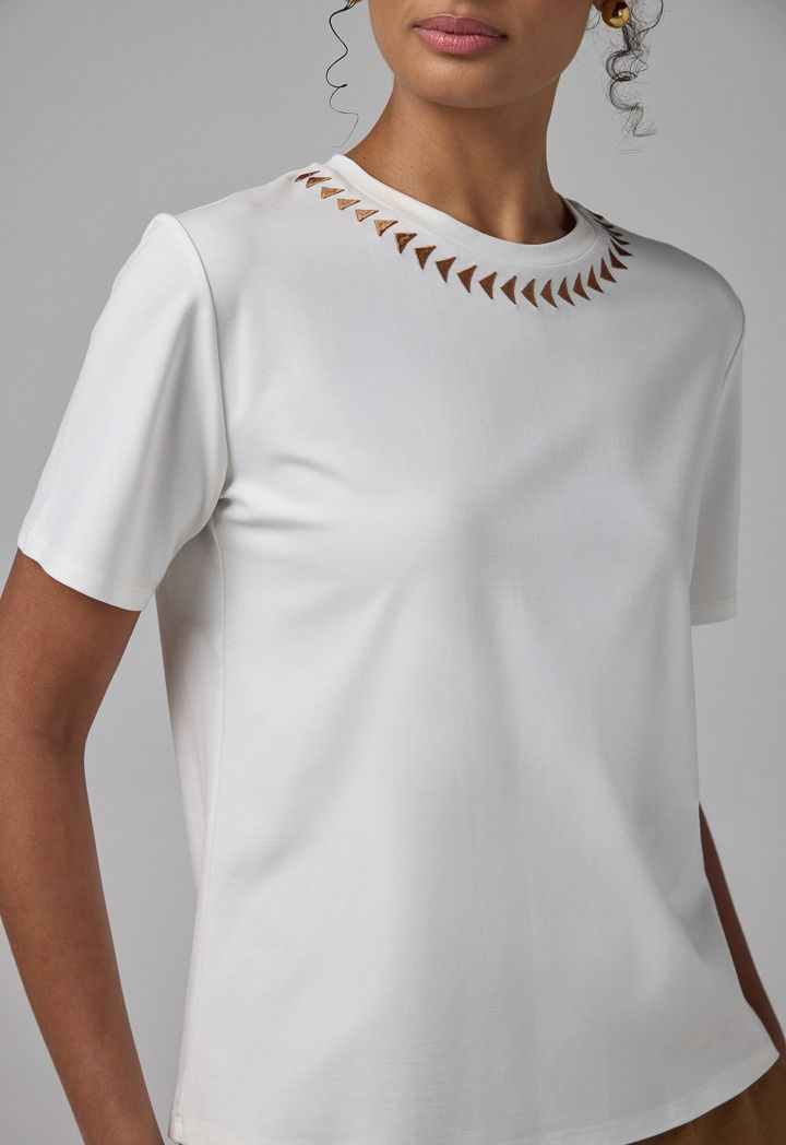 Add an extra trendy touch to your final outfit with this simple-elegant Embroidered T-shirt.