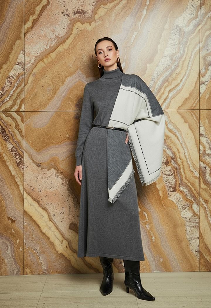 This geometric print pashmina scarf is cozy and provides the warmth you need for winter days.