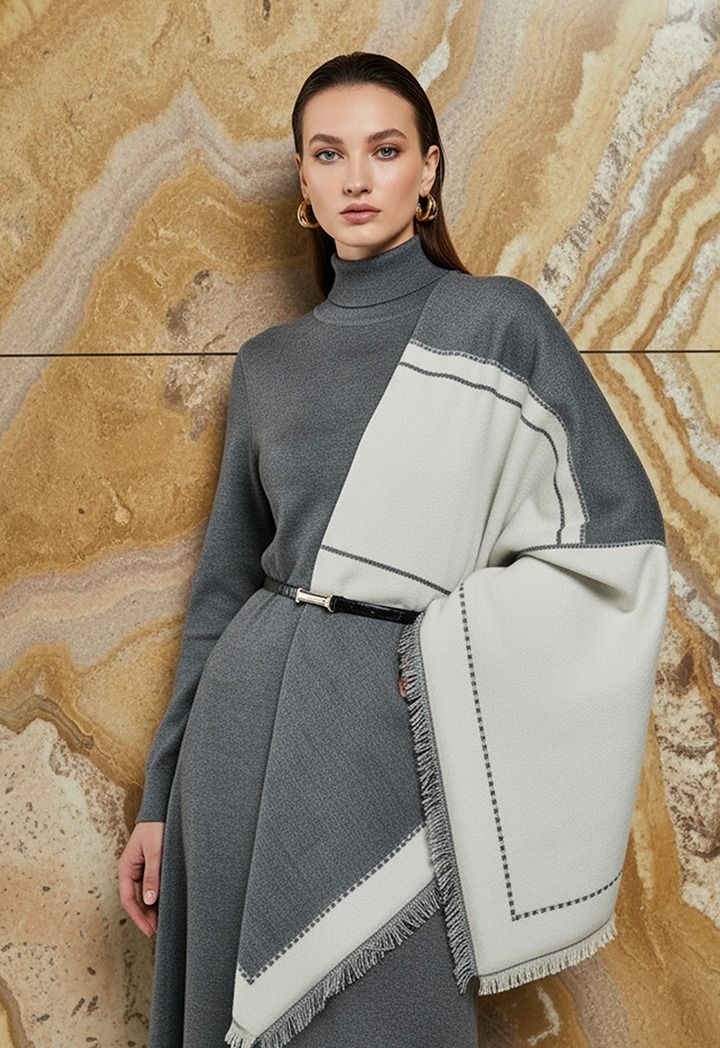 Geometric Frayed Pashmina Scarf |