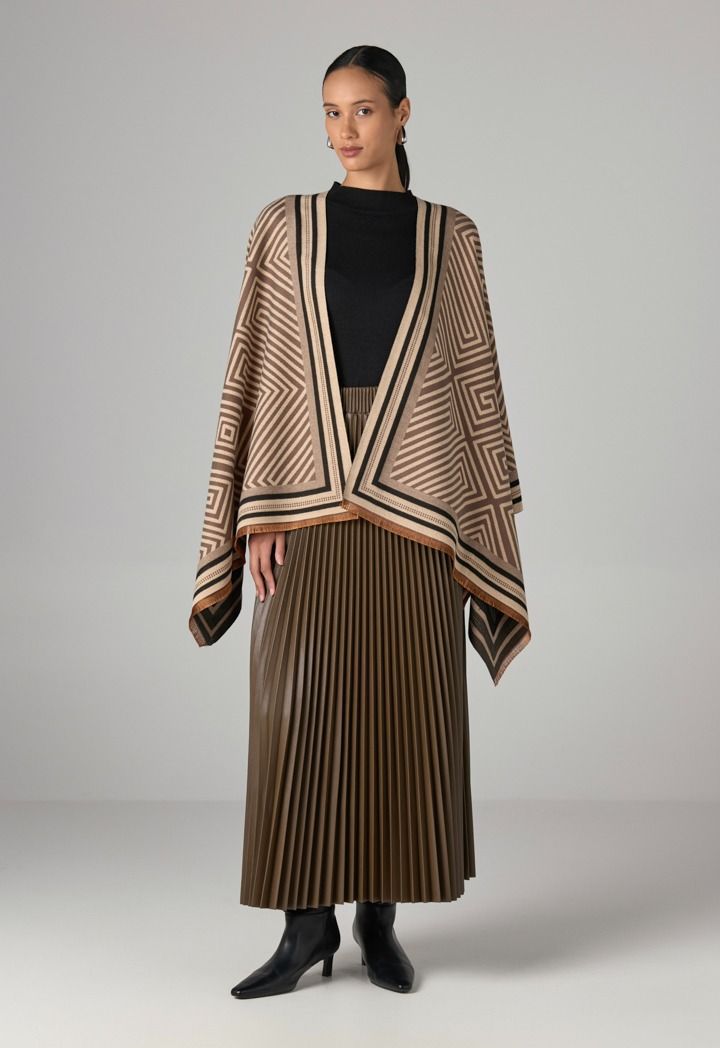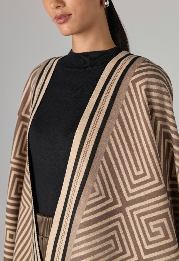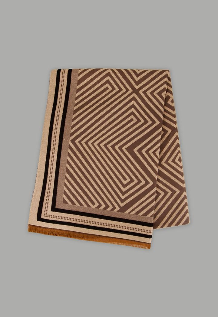 This geometric pashmina scarf adds depth and dimension to your style.