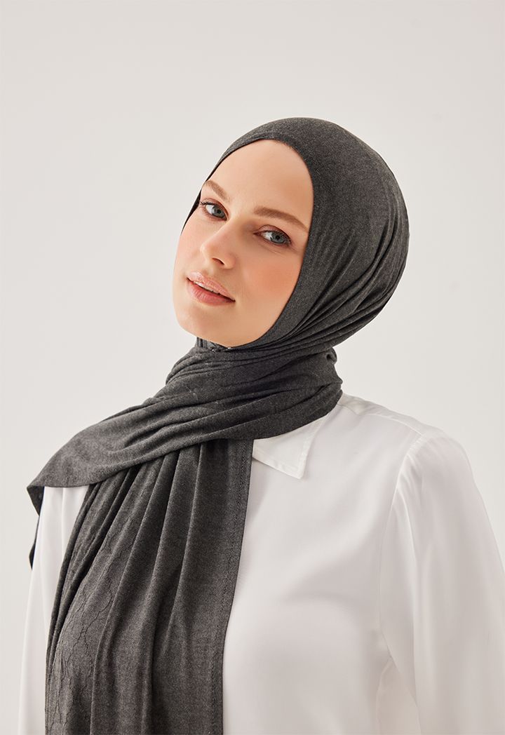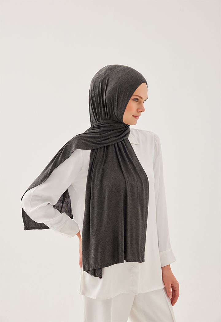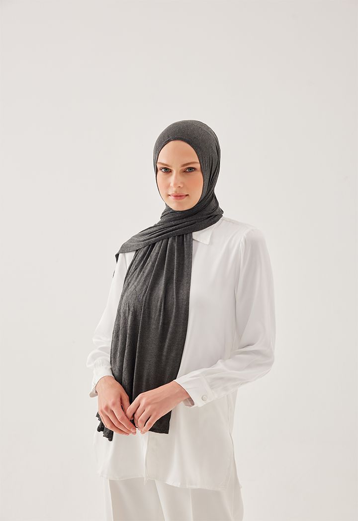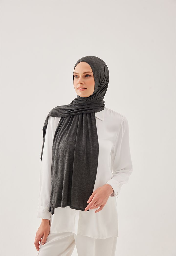 A Solid design of a hijab that features an alluring touch of a geometrical pattern.