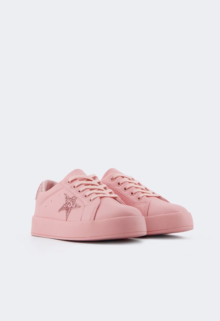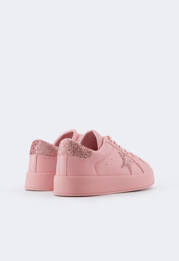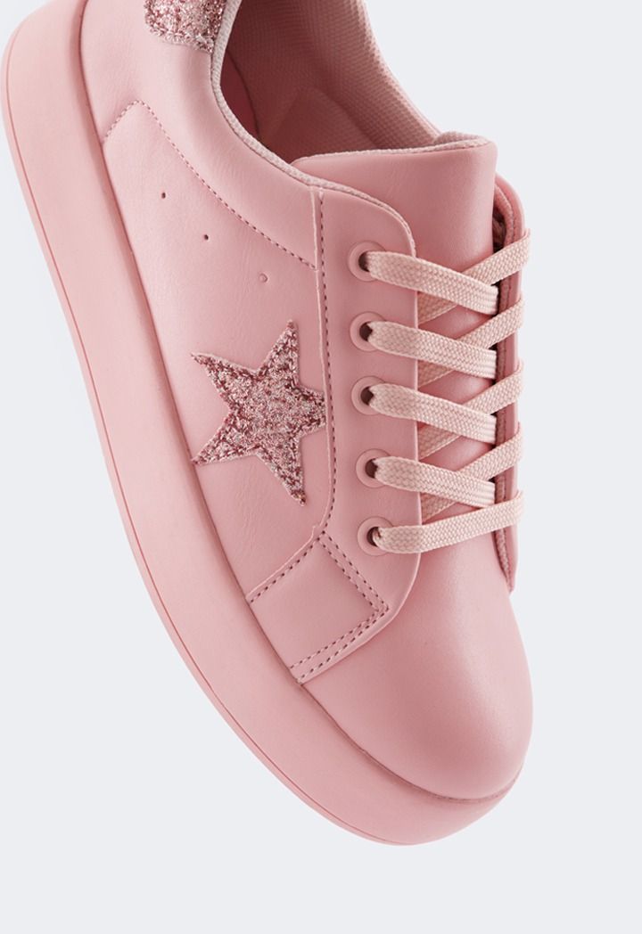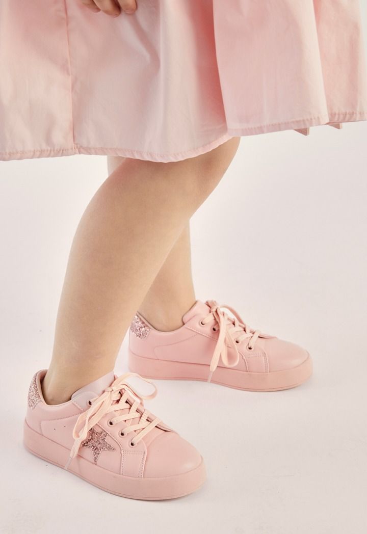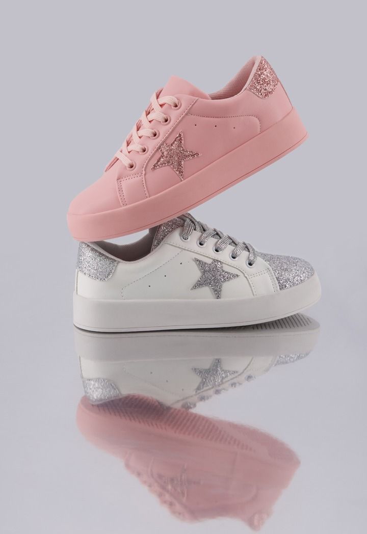 An elegant yet comfortable pair of shoes that features a cute glitter star design.