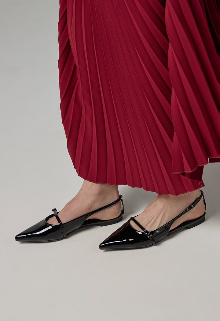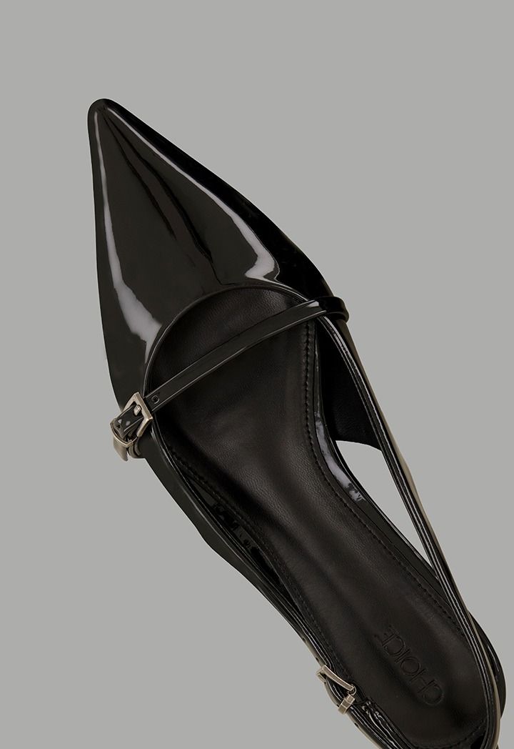 Glossy Strap Sling Back Flats