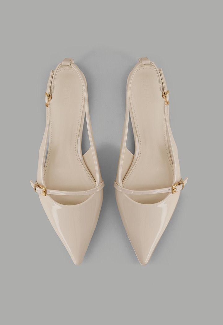 Glossy Strap Sling Back Flats