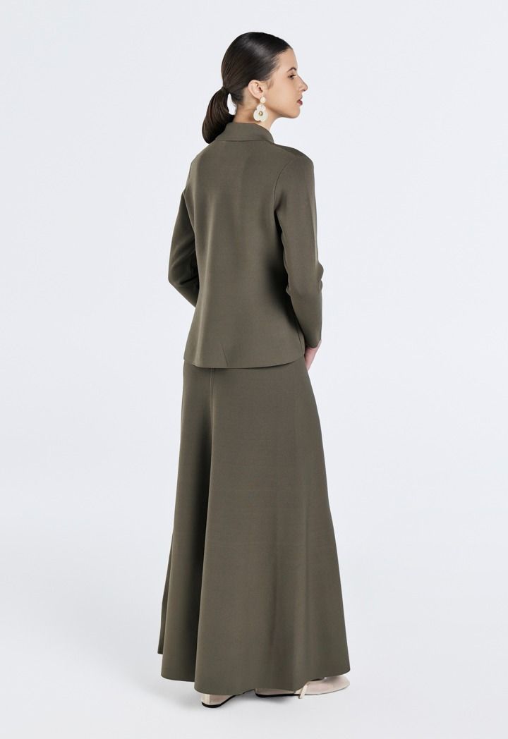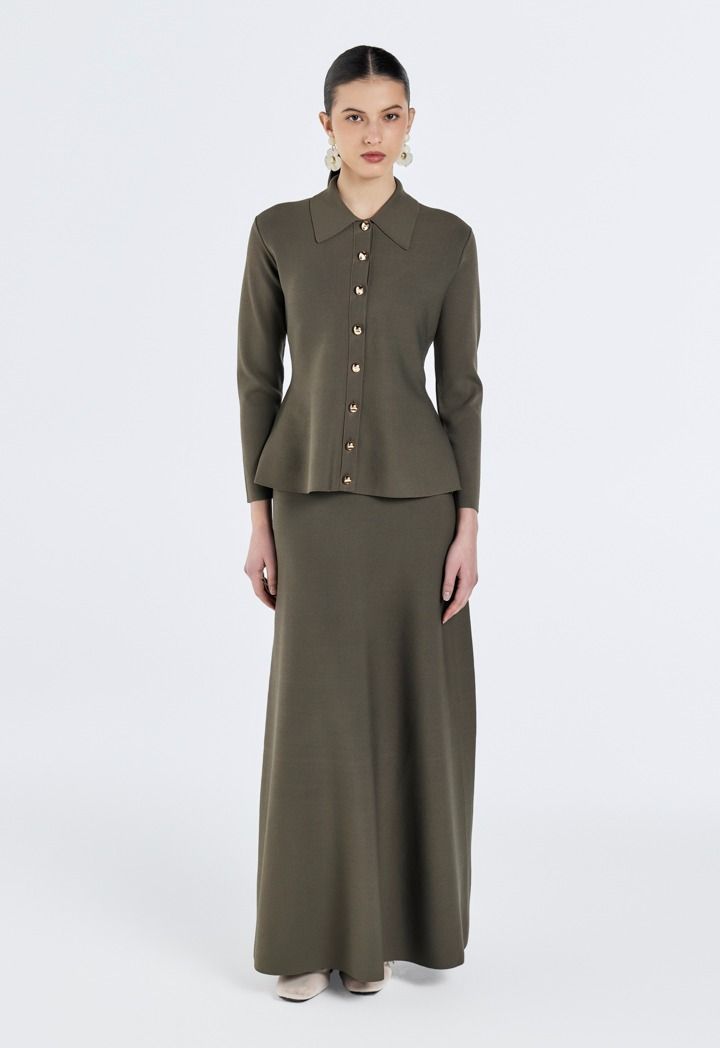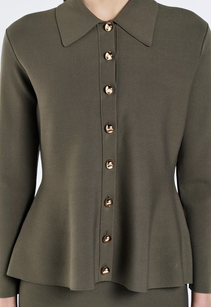 Design: Solid, Knitted, Ribbed, Fitted Waist , Gold Metal Buttons