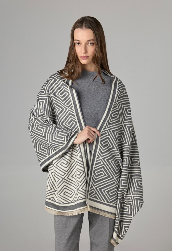 Pashmina Scarf with a Greek Key design, finished with elegant Frayed.