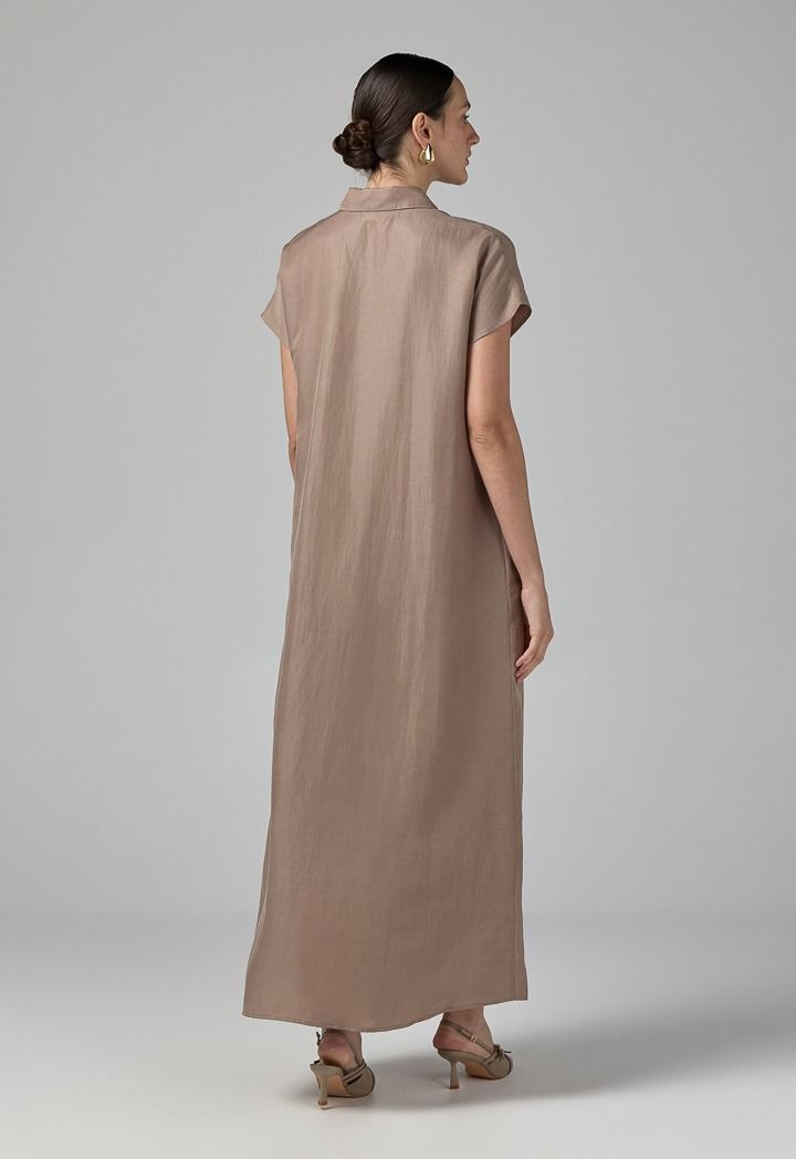 Half Buttons Cap Sleeves Dress |