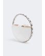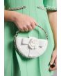 This half moon hand bag is sure to steal the lights of anywhere and everywhere that you go, with its quilted all around handle and PU Leather.