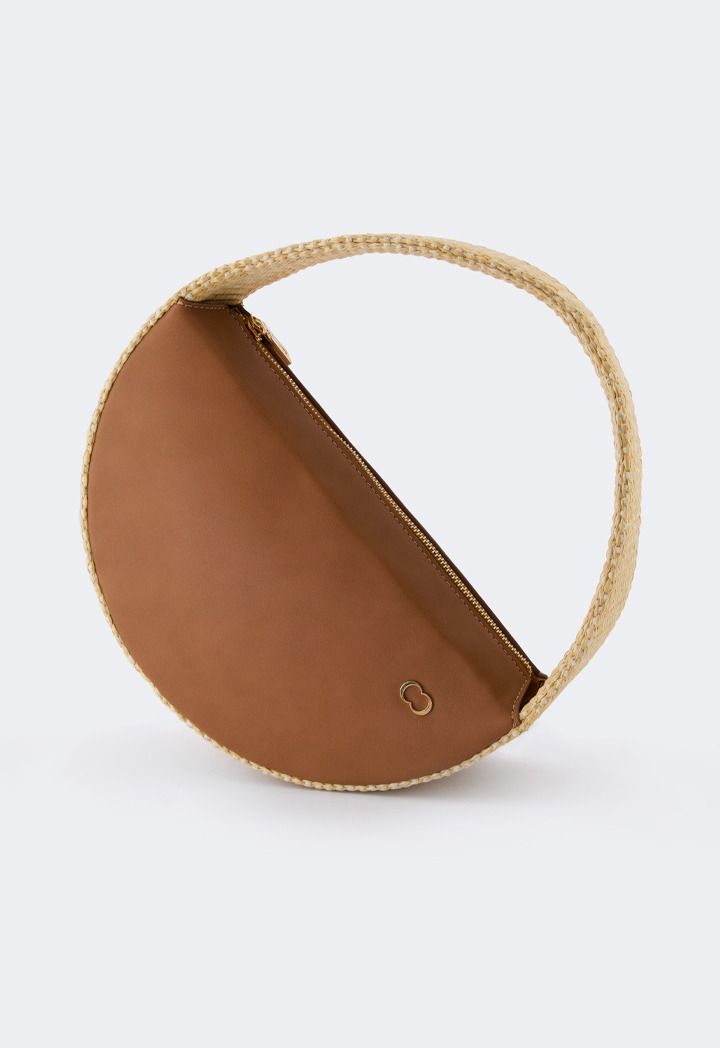 This handbag carried a unique design thanks to its raffia and PU Leather design.