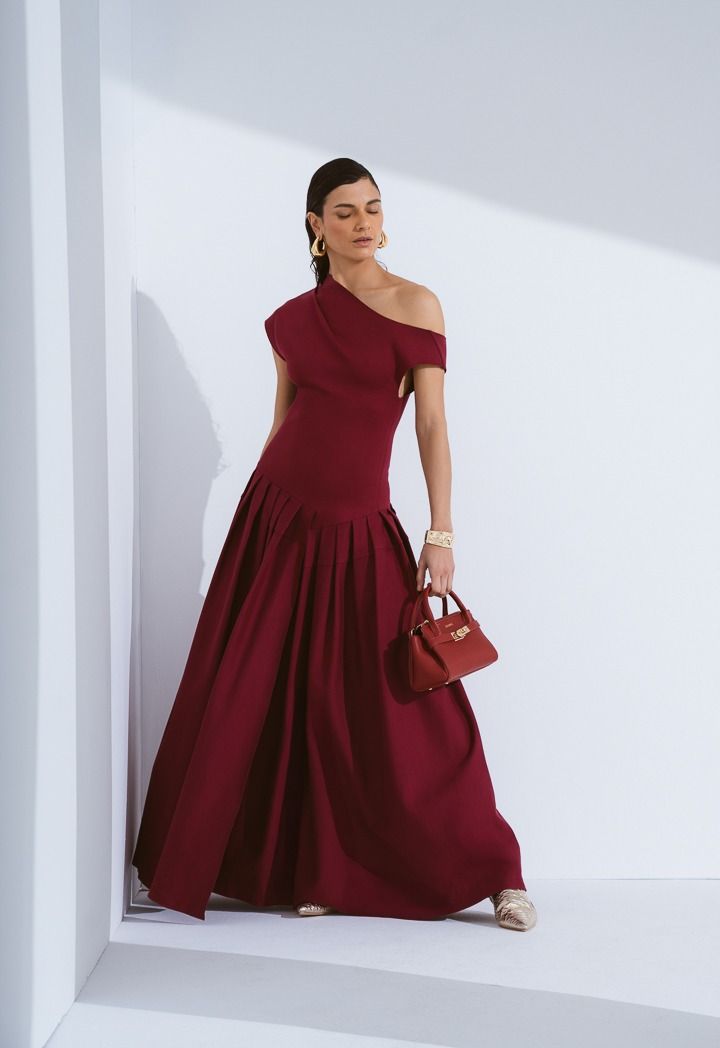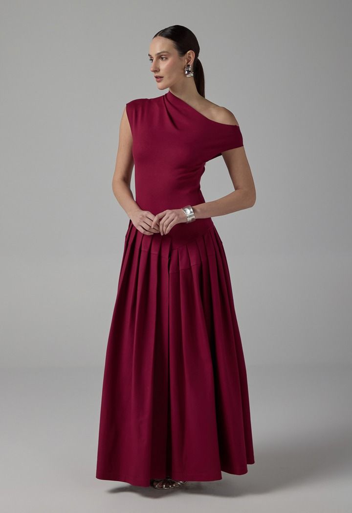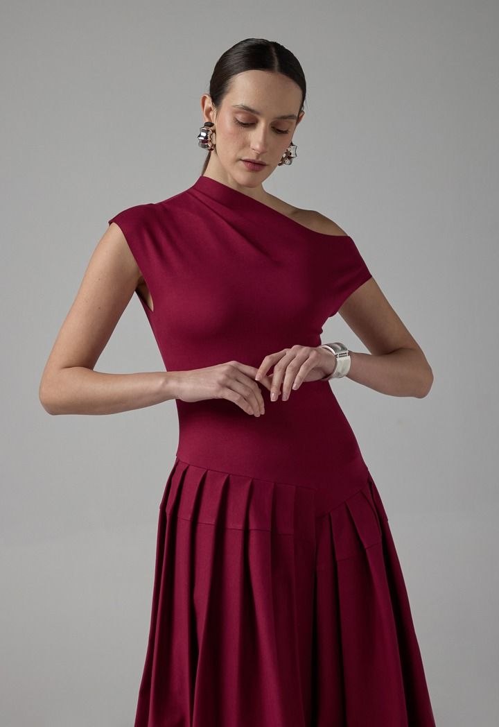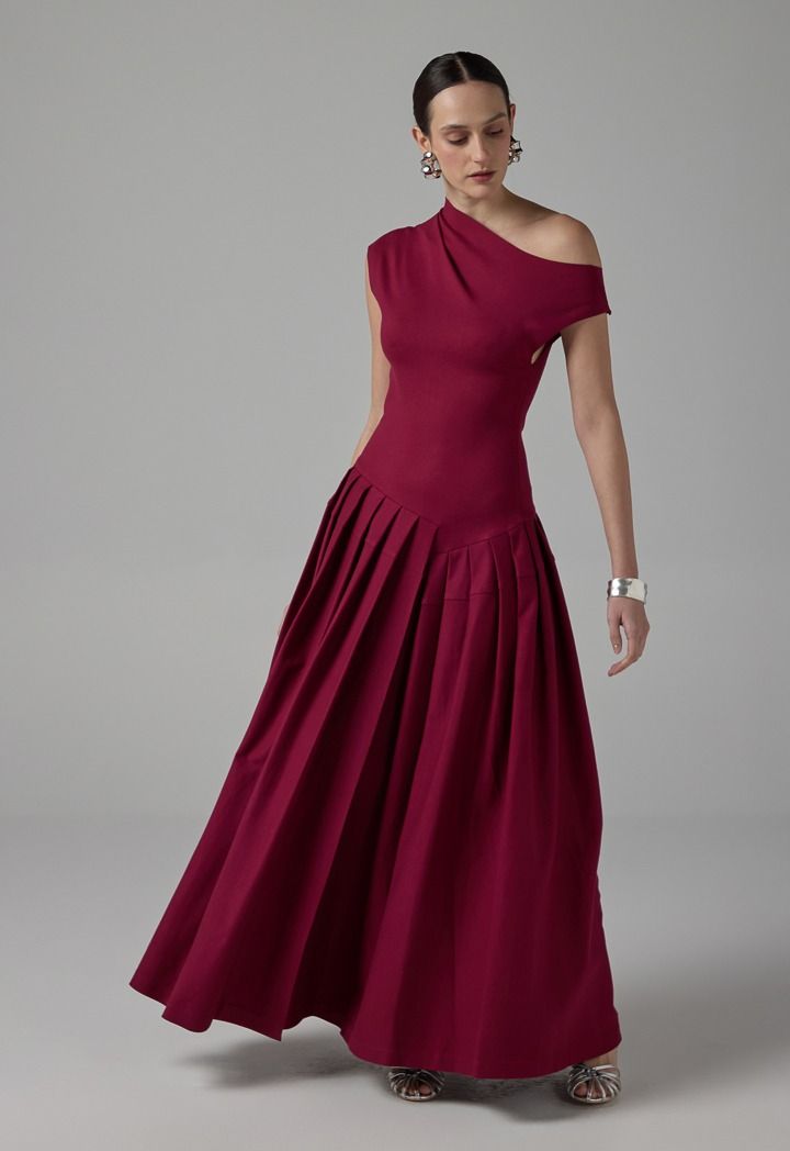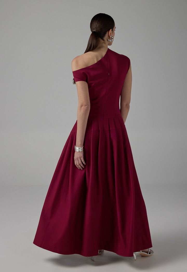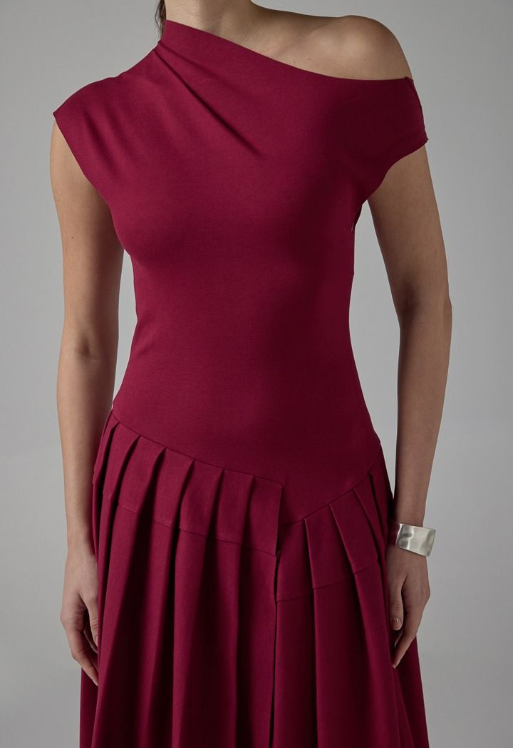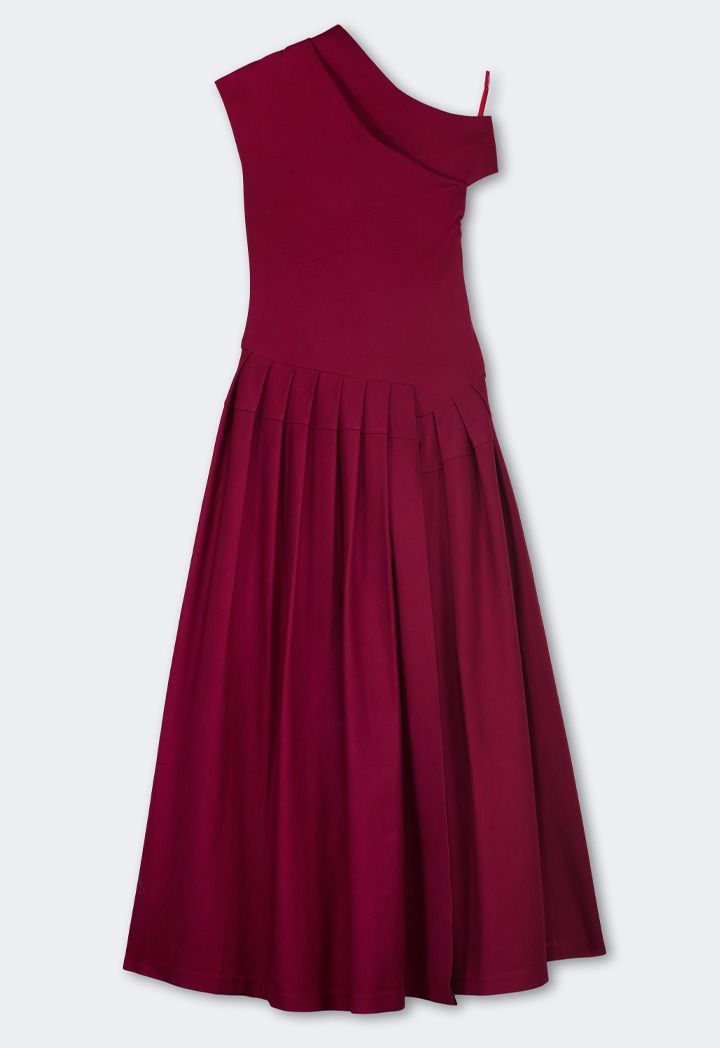 Half Of Shoulder Pleated Dress |