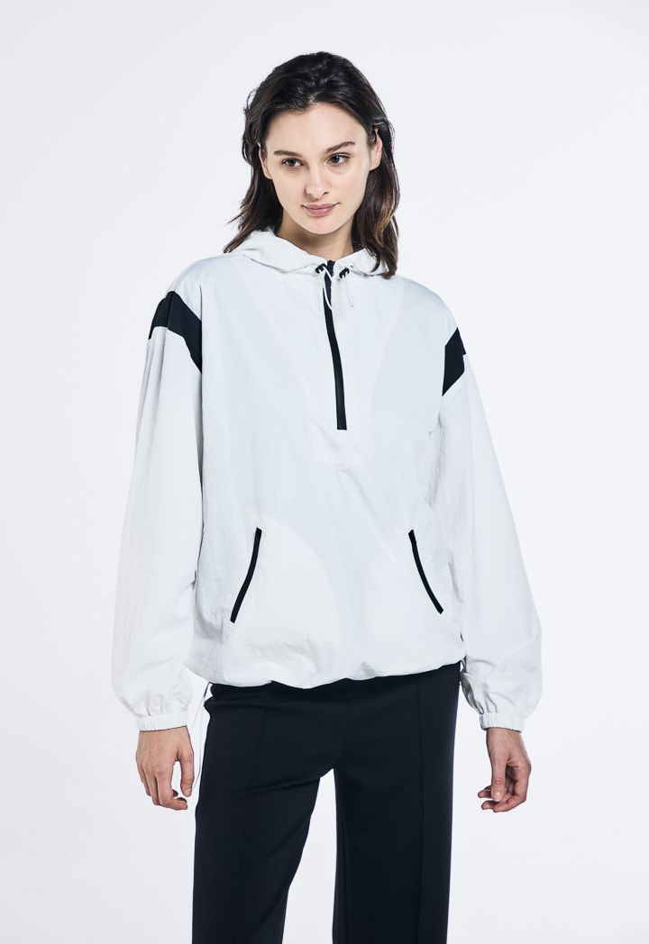 Design: Embossed Rubber Print, Contrast, Zip Pockets, Drawstring Hem, Breathable Inner Mesh