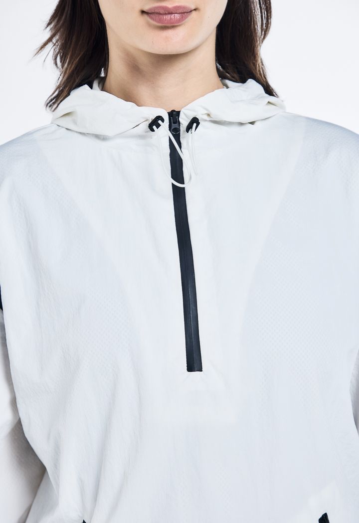 Running jacket helps you chase personal bests in style. It's designed with a hood and breathable inner mesh that keep you feeling cool.