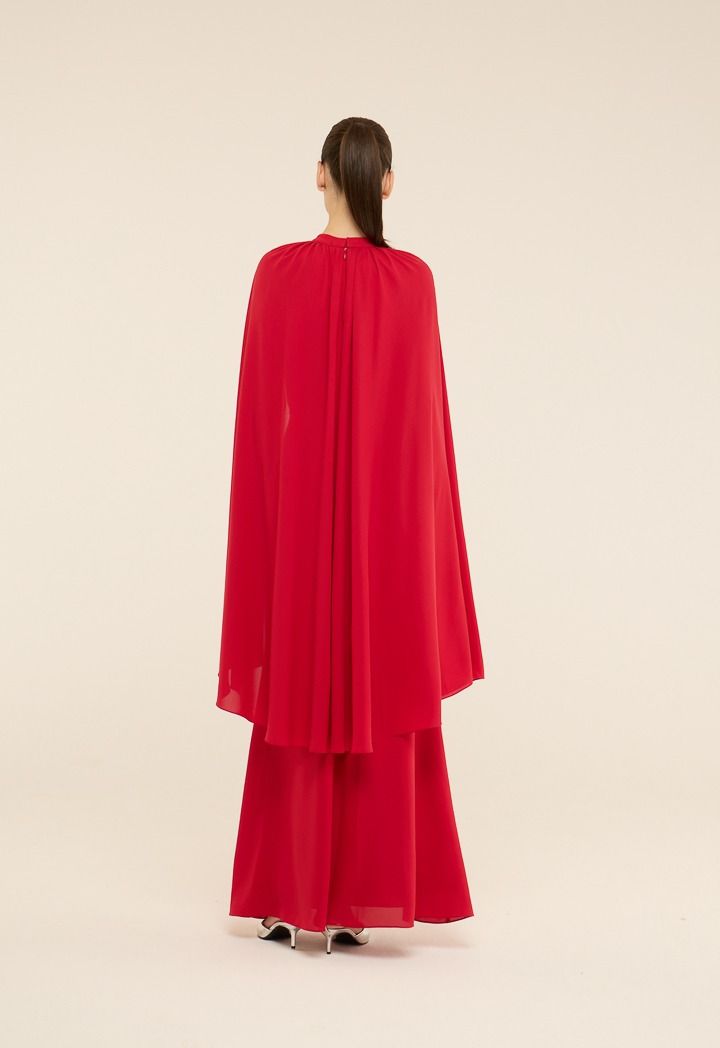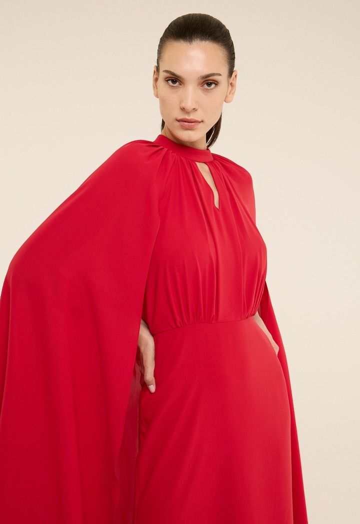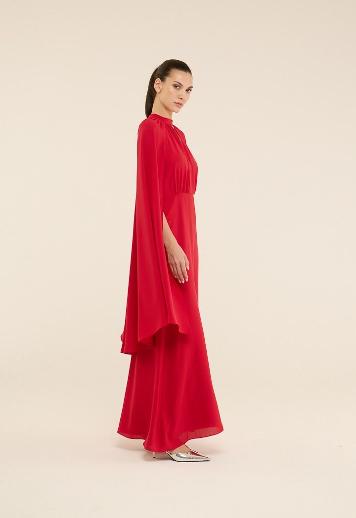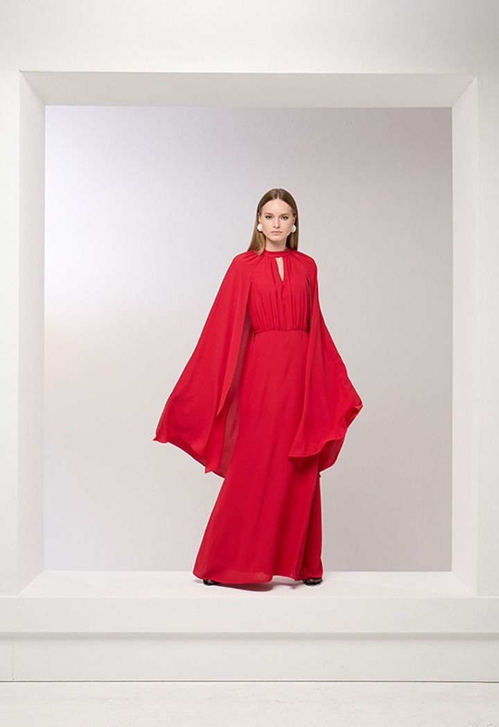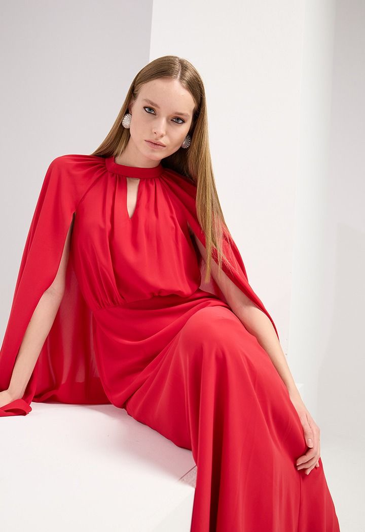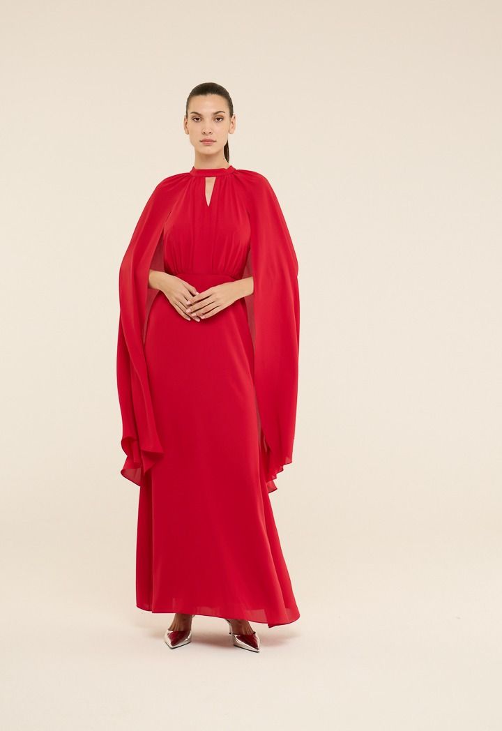 Exude timeless elegance in the cape style maxi dress. This dress is a statement piece perfect for your most special occasions.