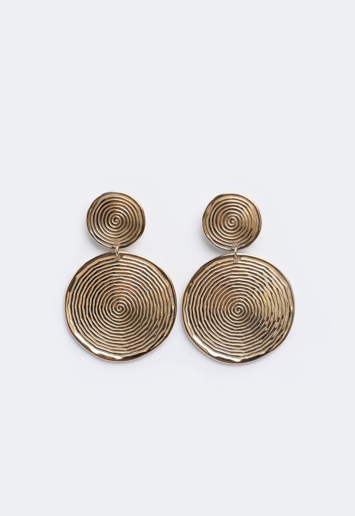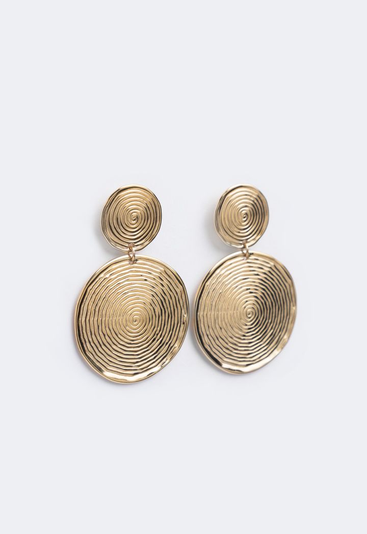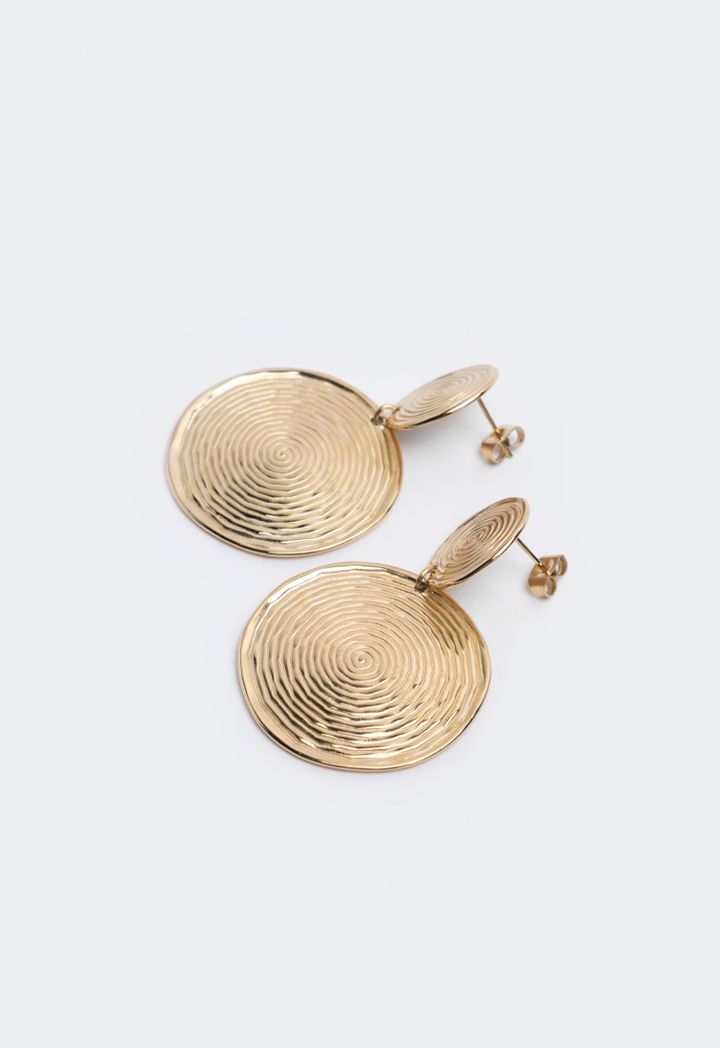 A touch of metallic hammered circle earrings that is sure to steal the looks.