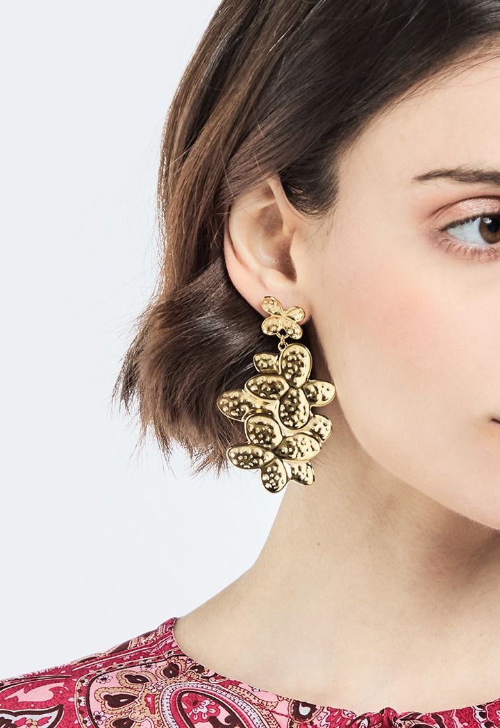 Decore your ears with this pair of earrings that feature a hammered floral design.
