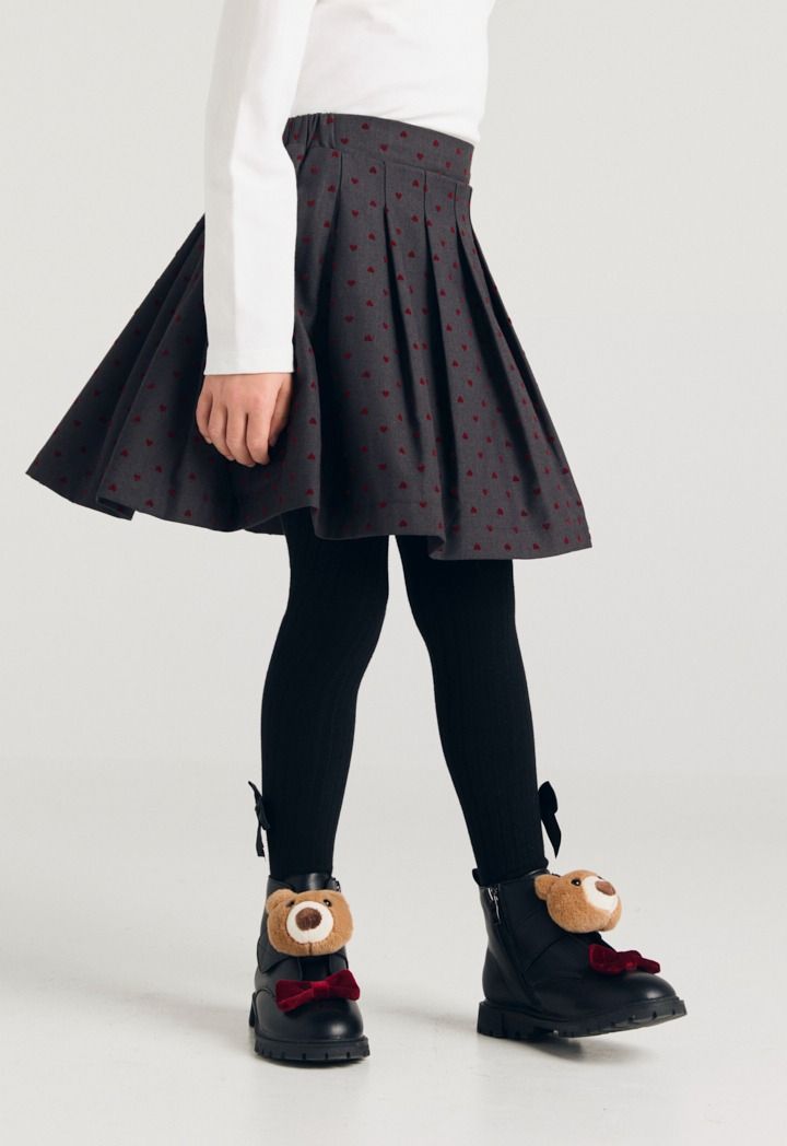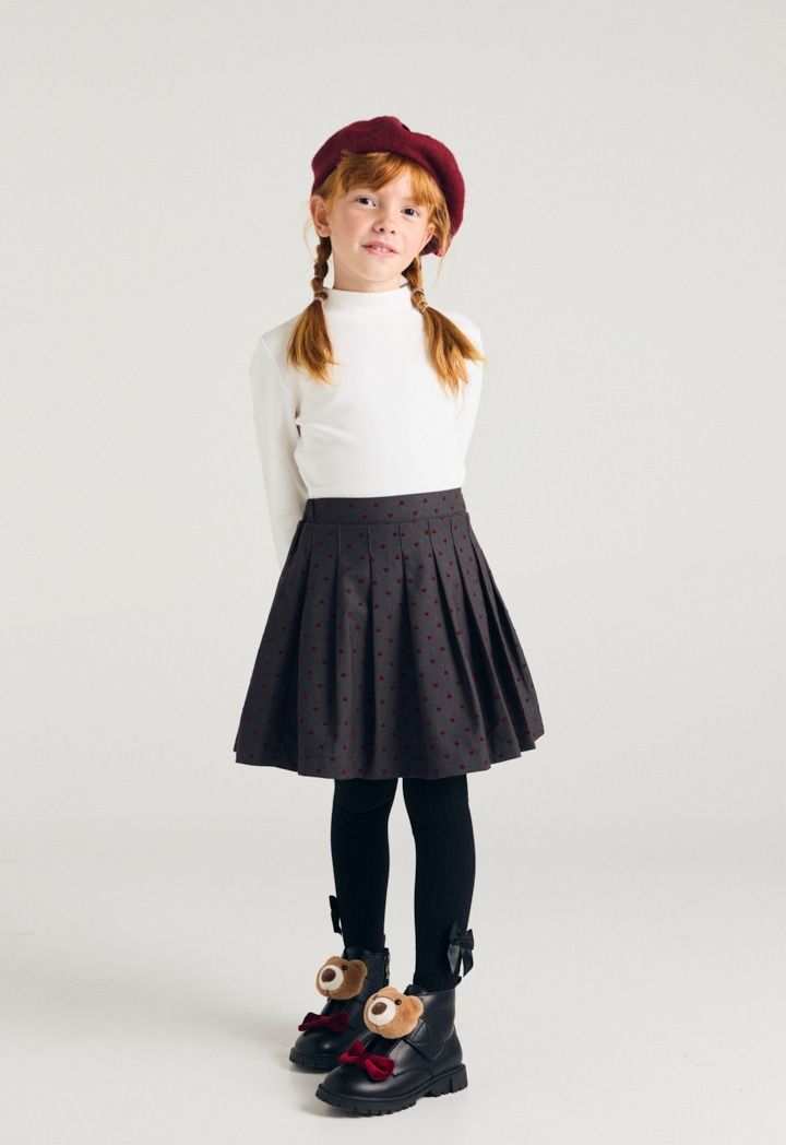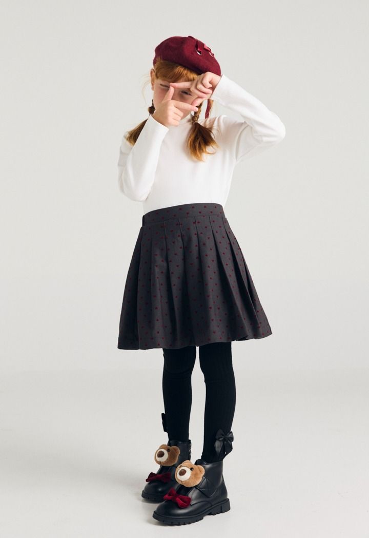 This Heart Dots short skirt would be cute with a pair of stockings and a plain shoe.