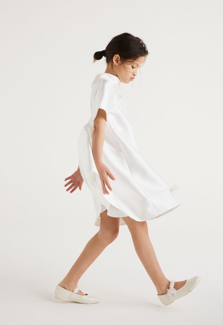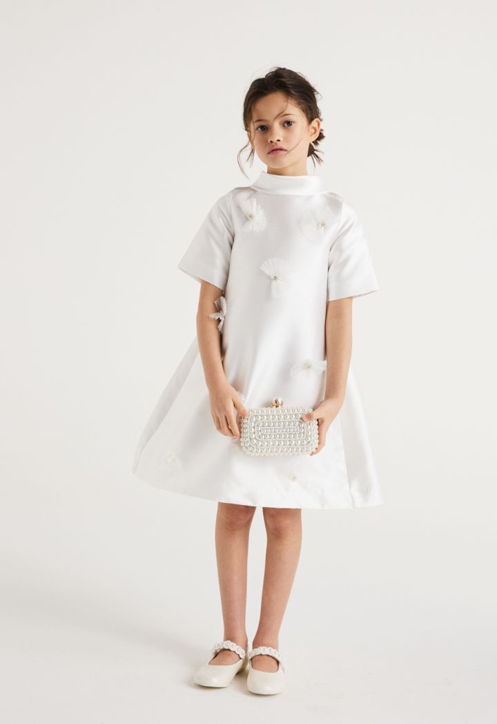 The perfect mix of simplicity and sparkle is in this dress, featuring a solid outline and a faux pearls and rhinestones embellishment.