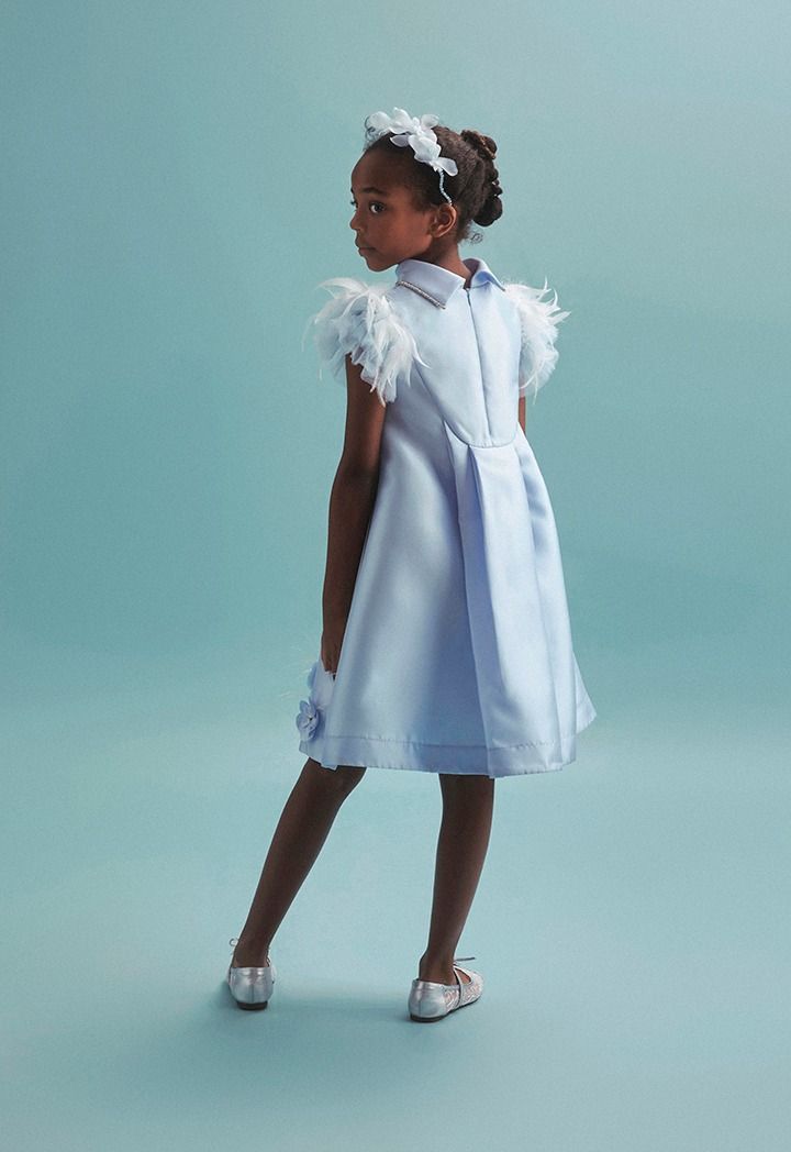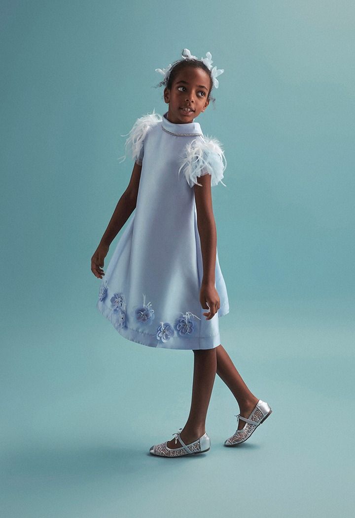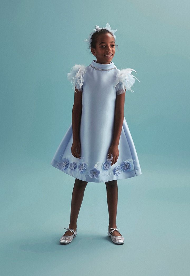 The perfect mix of simplicity and sparkle is in this dress, featuring a solid outline and a faux pearls and 3D Flowers.