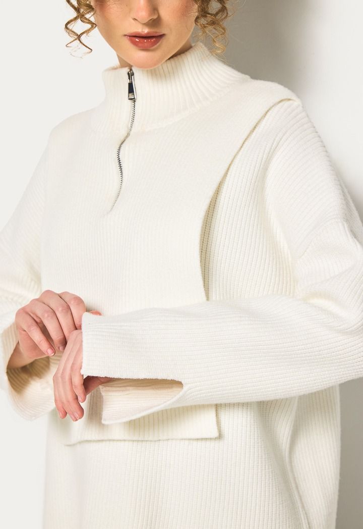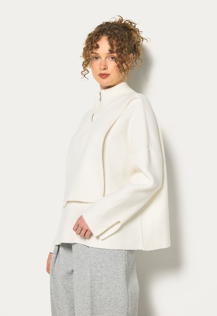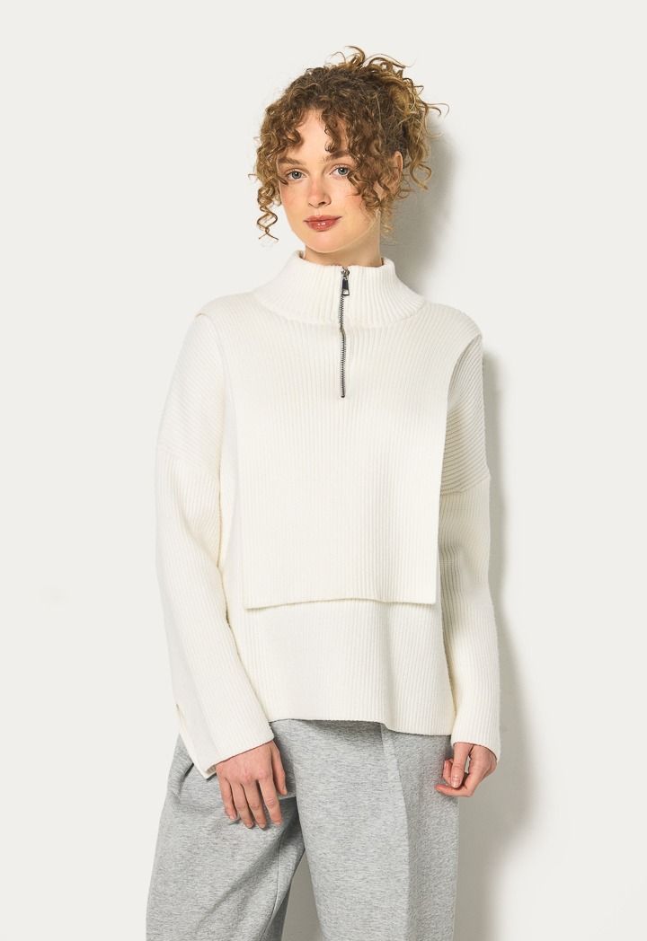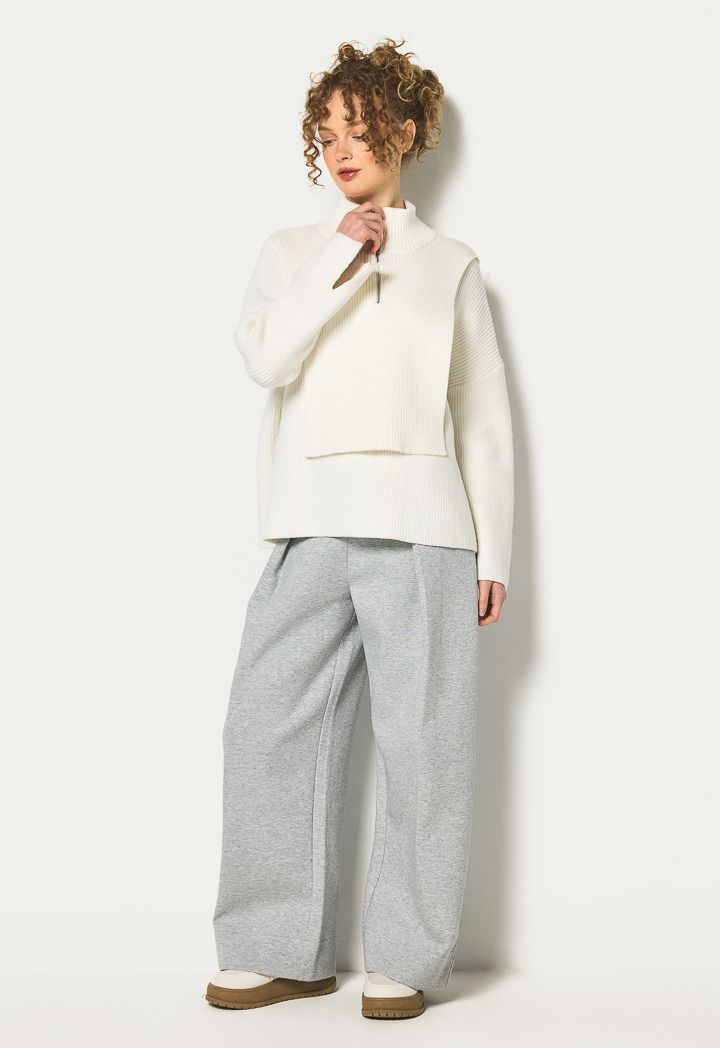 This knitted ribbed jumper with a fitted bodice pairs effortlessly with jeans and sneakers for a casual, chic look.