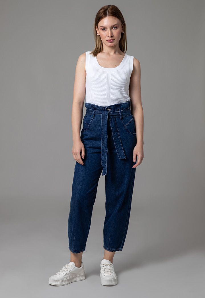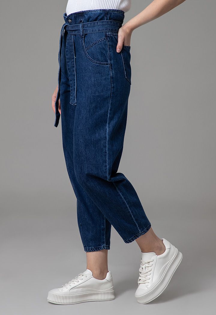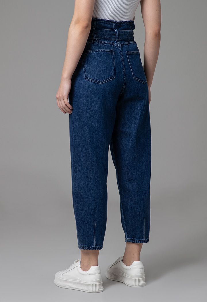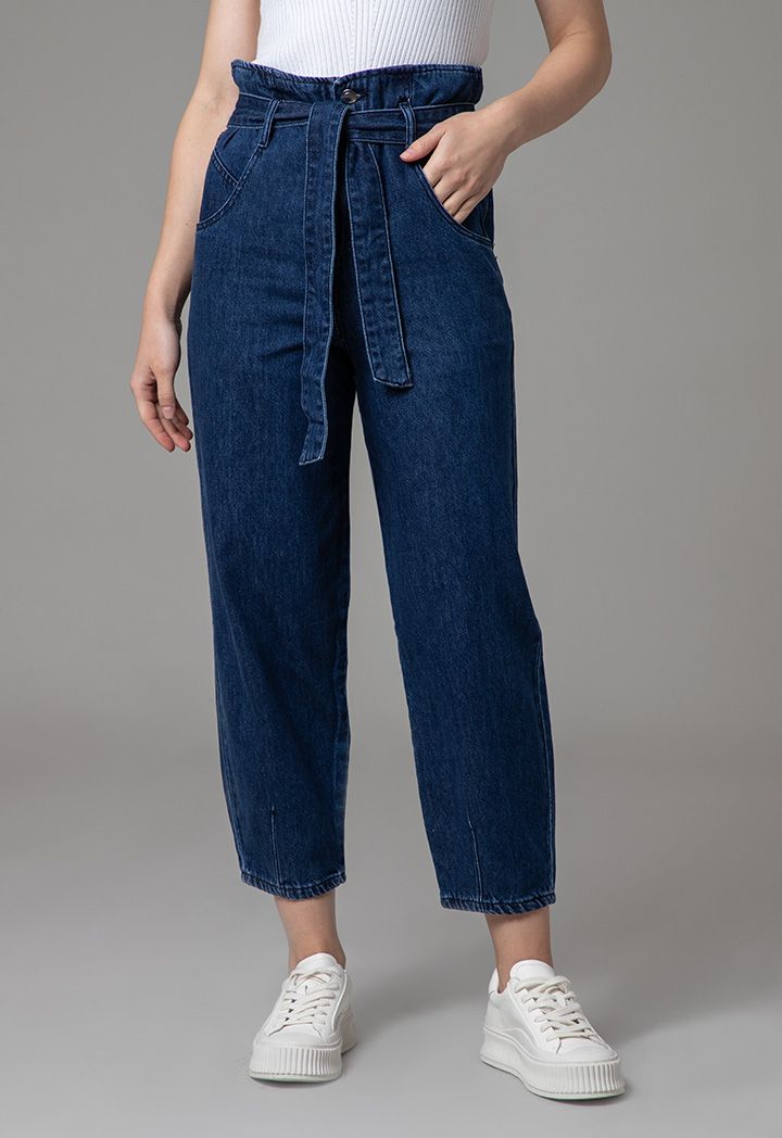 High Rise Paperbag Waist Band Regular Fit Denim Jeans |