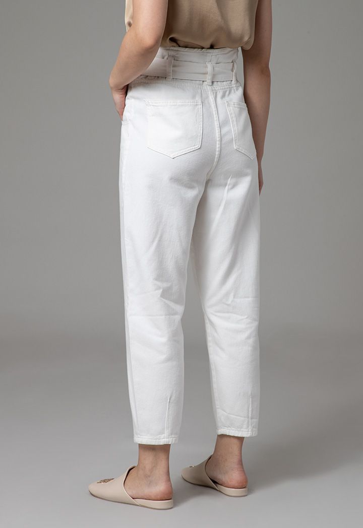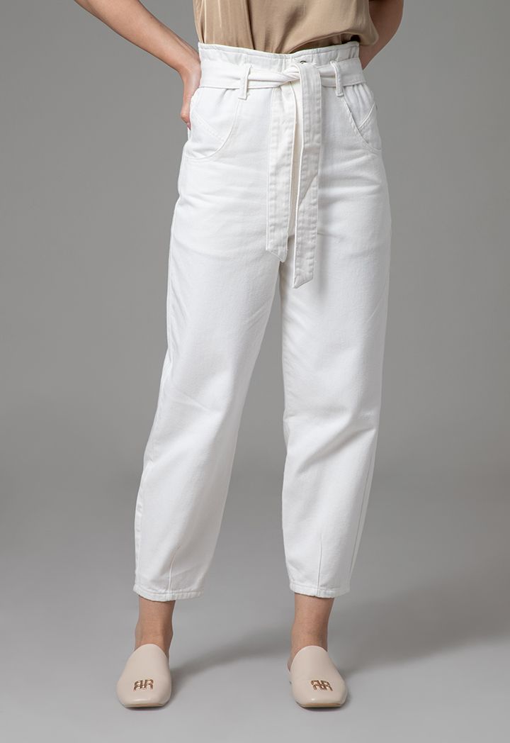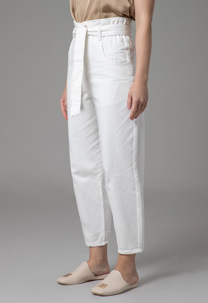 High Rise Paperbag Waist Band Regular Fit Denim Jeans |