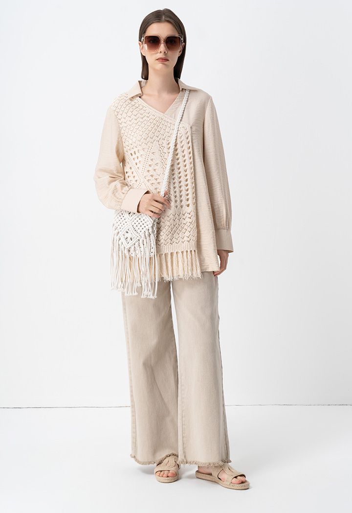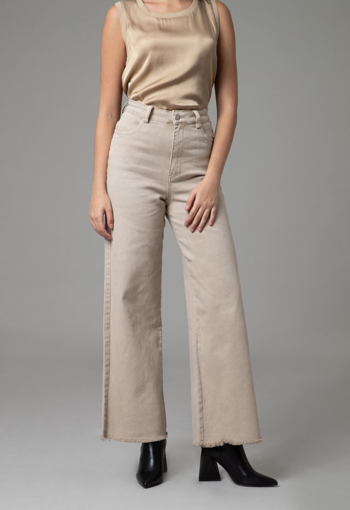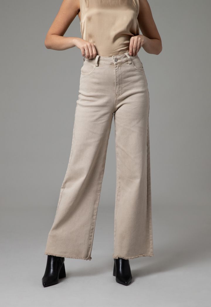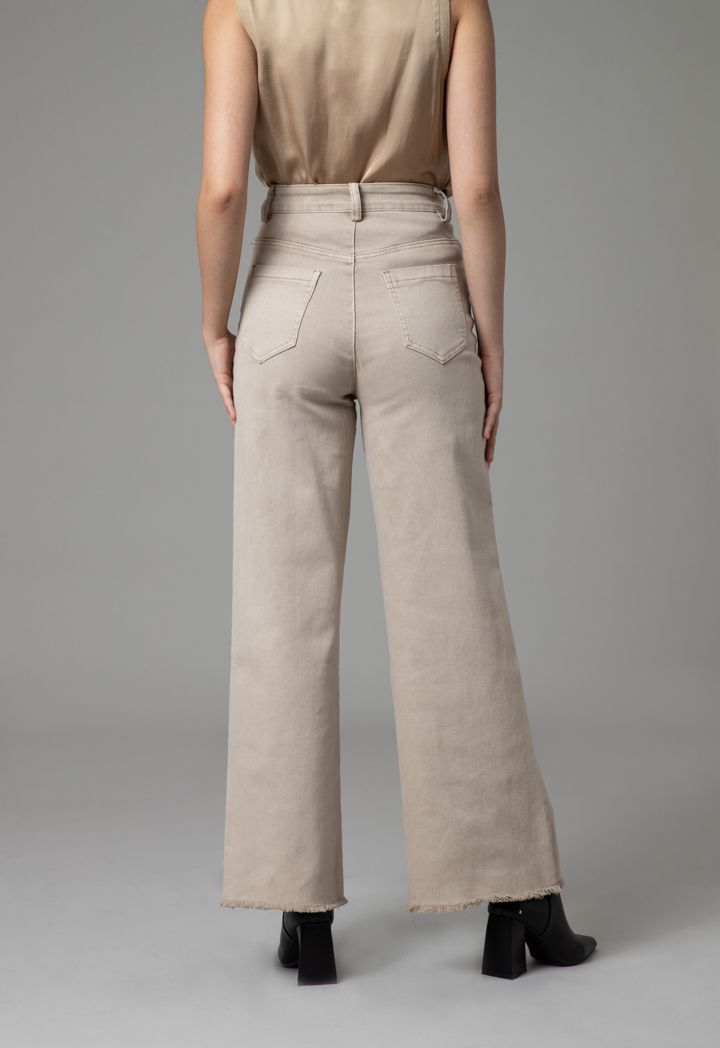 Design : High rise, Wide leg cut, Frayed hem, Back pockets